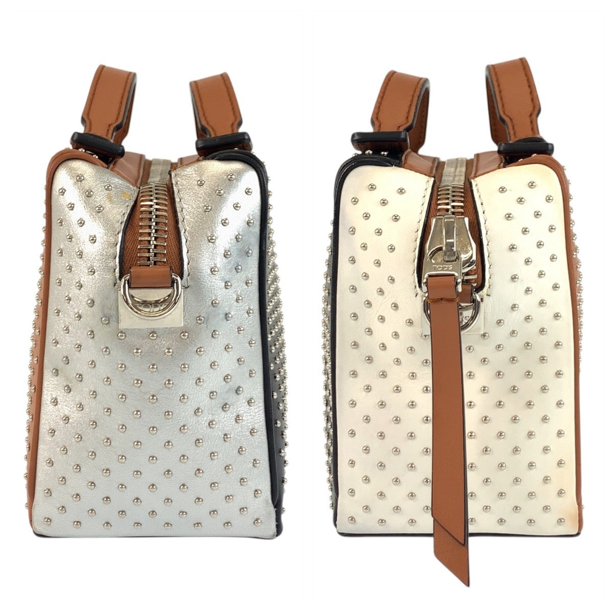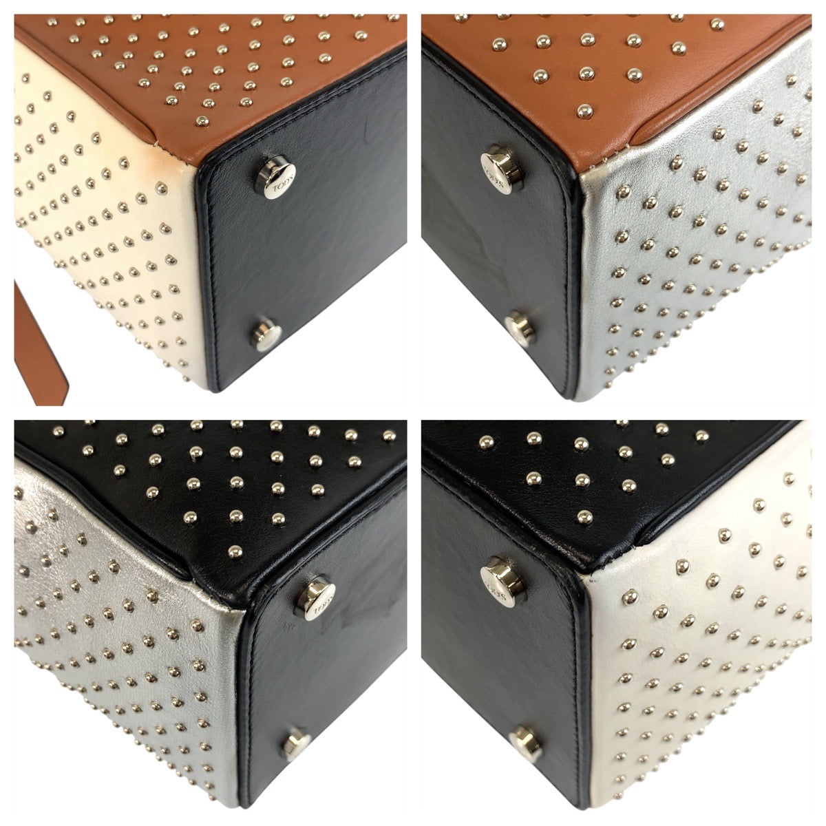 18356 TOD’S トッズ ゴンミーニ ブラウン ブラック シルバー金具 レザー ショルダーバッグ ハンドバッグ 2way レディース A45