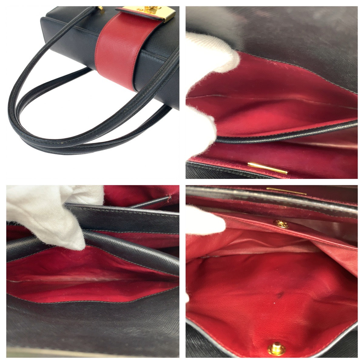 18443 PRADA プラダ サフィアーノ ブラック レッド ゴールド金具 レザー B2725C ハンドバッグ トートバッグ レディース AB52
