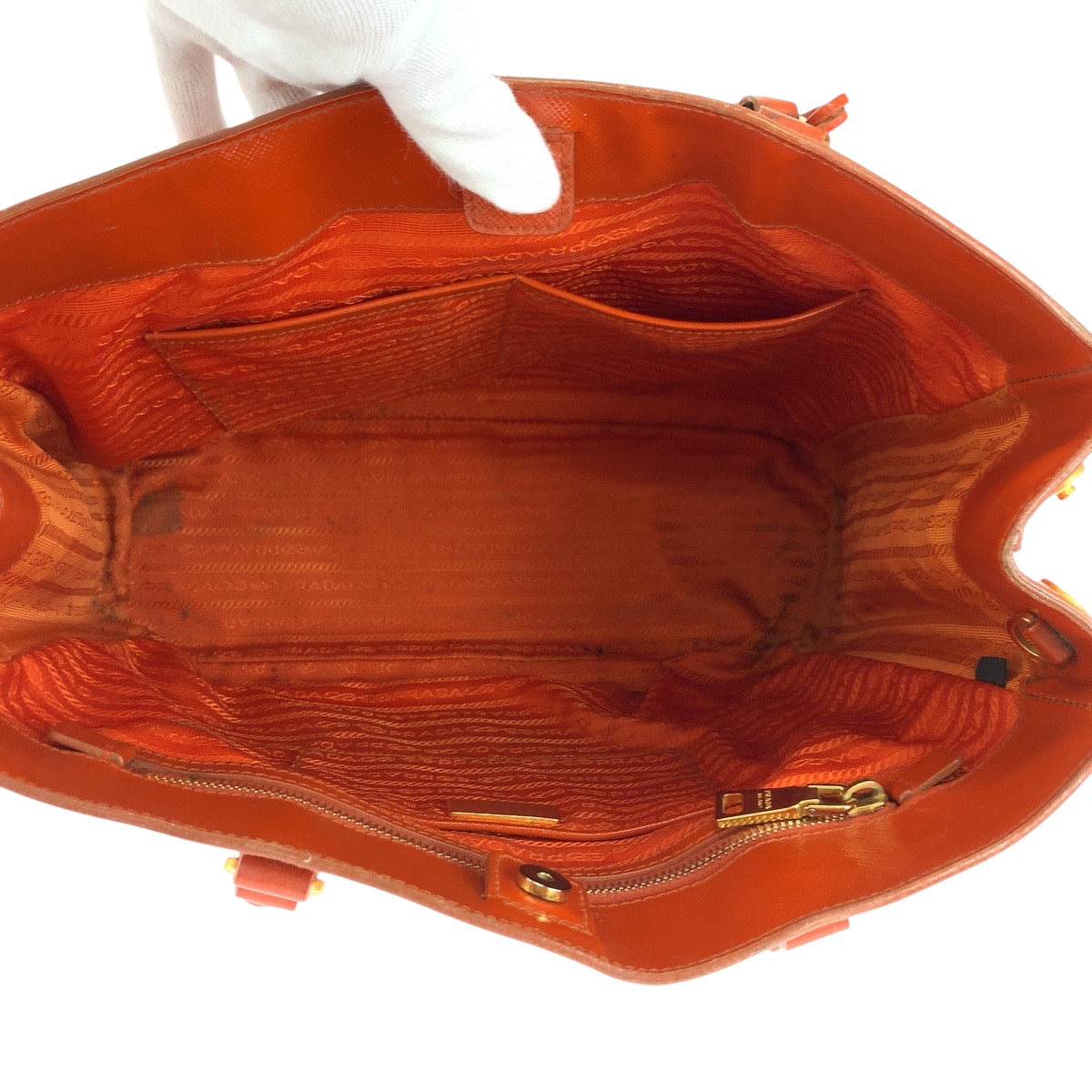 18453 PRADA プラダ サフィアーノ ガレリア オレンジ ゴールド金具 パテントレザー ショルダーバッグ ハンドバッグ 2way レディース AB62