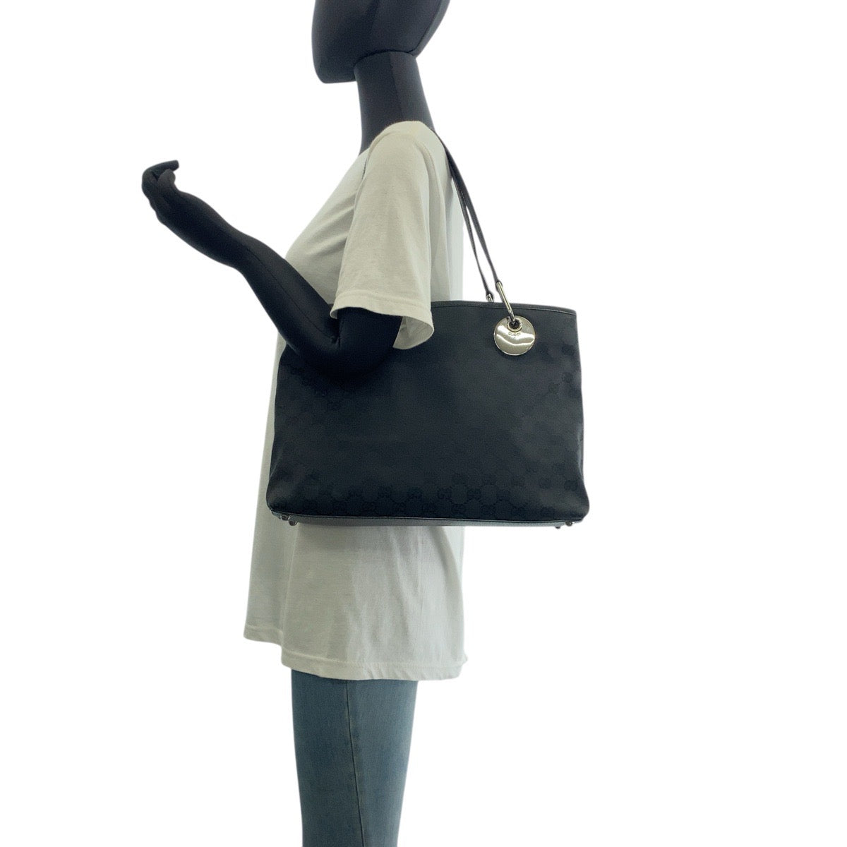 18467 GUCCI グッチ ブラック 黒 シルバー金具 GGキャンバス / レザー 120837 トートバッグ ショルダーバッグ レディース ABP39