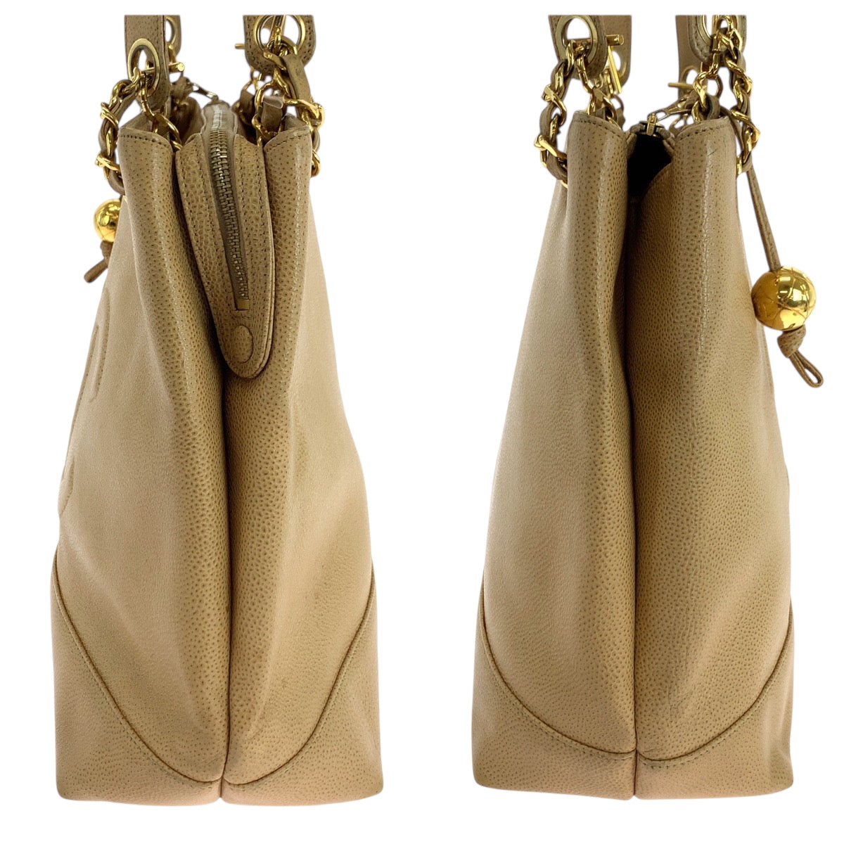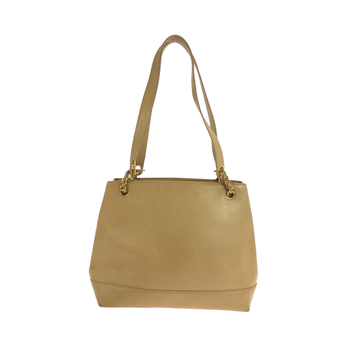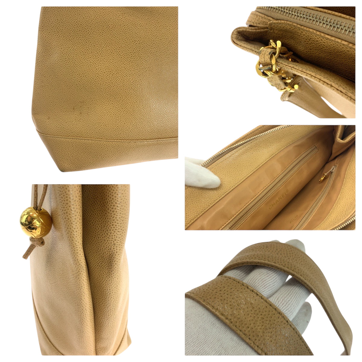 18474 CHANEL シャネル ヴィンテージ ココマーク キャメル ゴールド金具 キャビアスキン チェーンショルダーバッグ 肩掛け レディース AB160