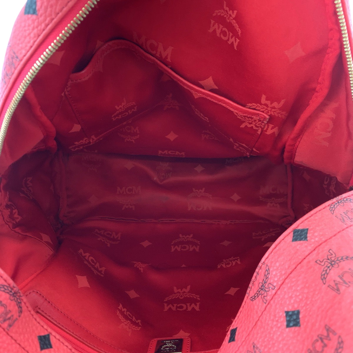 18499 MCM エム シー エム ヴィセトス スタッズ レッド ゴールド金具 レザー リュックサック バックパック レディース ABP45