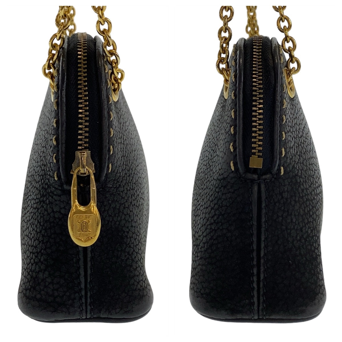 18513 CELINE セリーヌ ヴィンテージ トリオンフ ブラック 黒 ゴールド金具 レザー ミニショルダーバッグ アクセサリーポーチ ポシェット レディース ABP43
