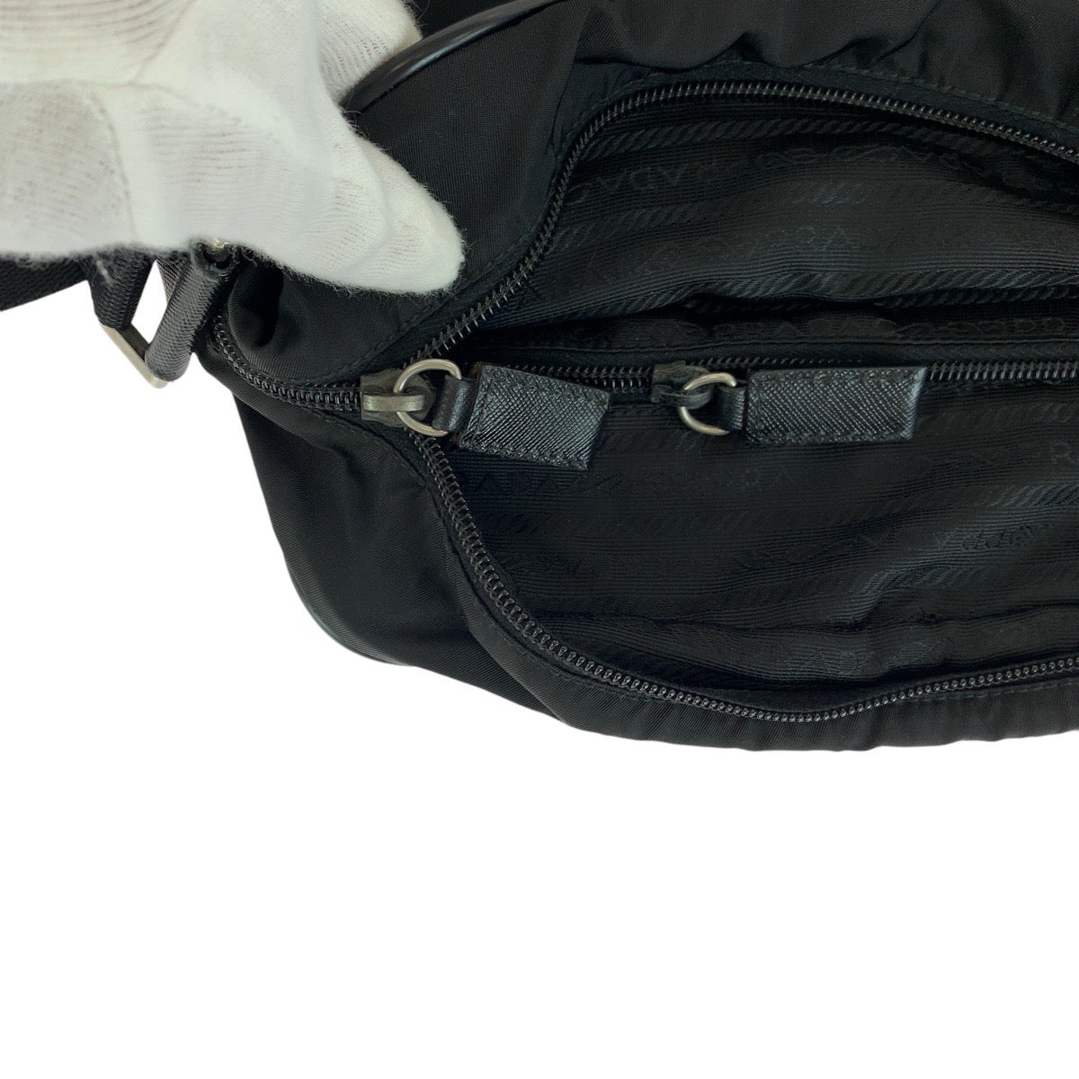 18596 PRADA プラダ テスート 三角ロゴプレート ブラック 黒 シルバー金具 ナイロン / レザー ショルダーバッグ ポシェット 男女兼用 レディース ABP43