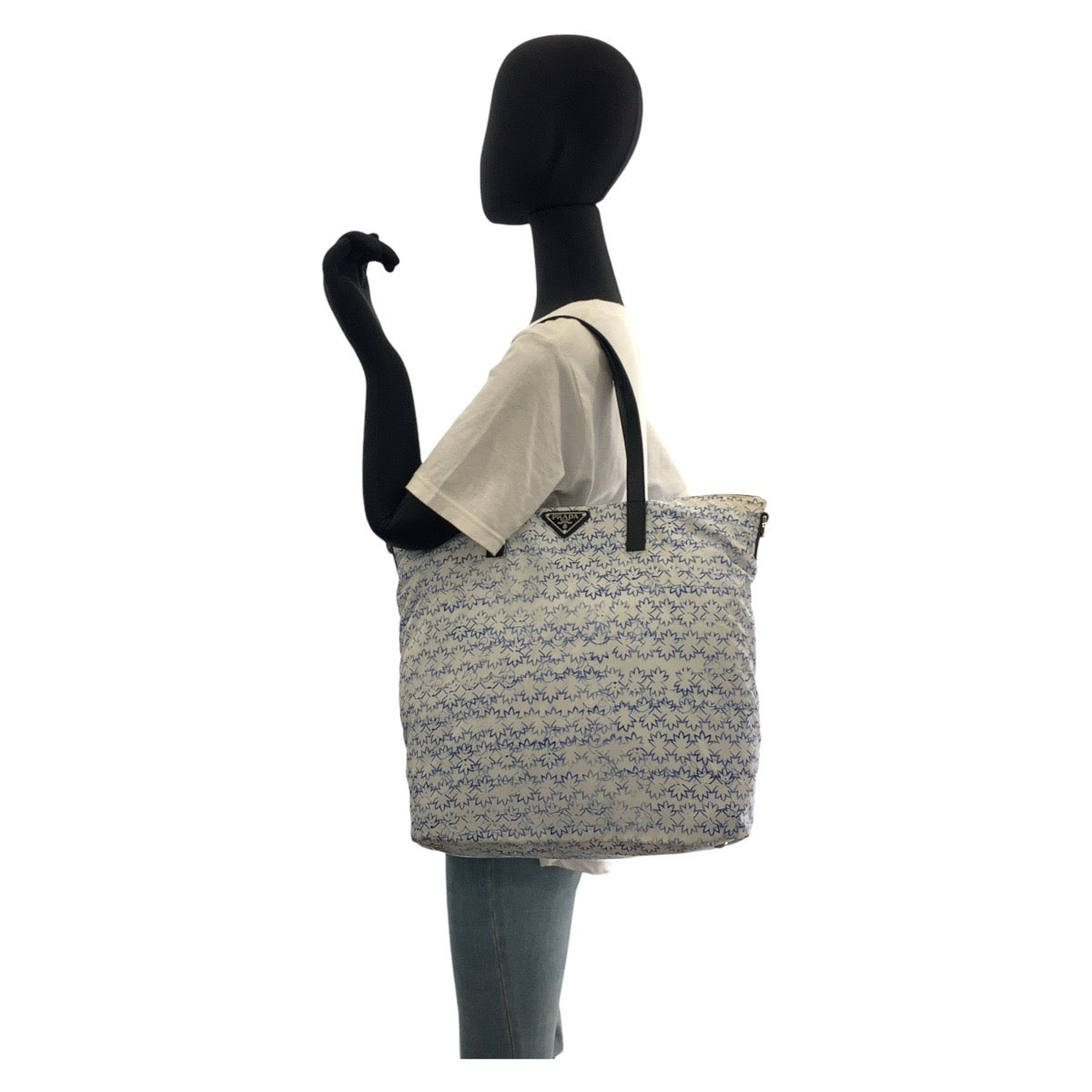 18619 PRADA プラダ ホワイト ブルー ブラック シルバー金具 ナイロン / レザー トートバッグ ショルダーバッグ 2way レディース AB26