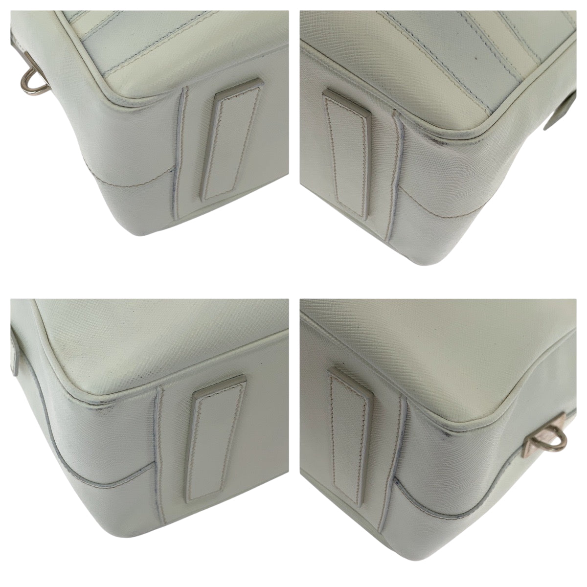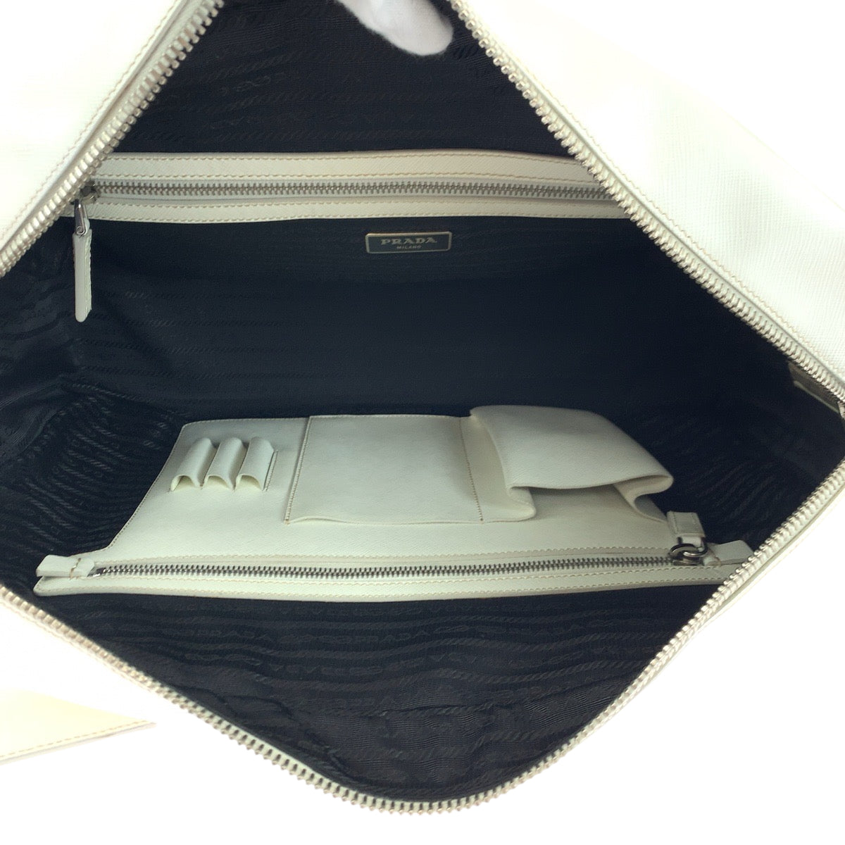 18845 PRADA プラダ サフィアーノ ロゴ ホワイト シルバー金具 レザー ビジネスバッグ ハンドバッグ レディース ABP65
