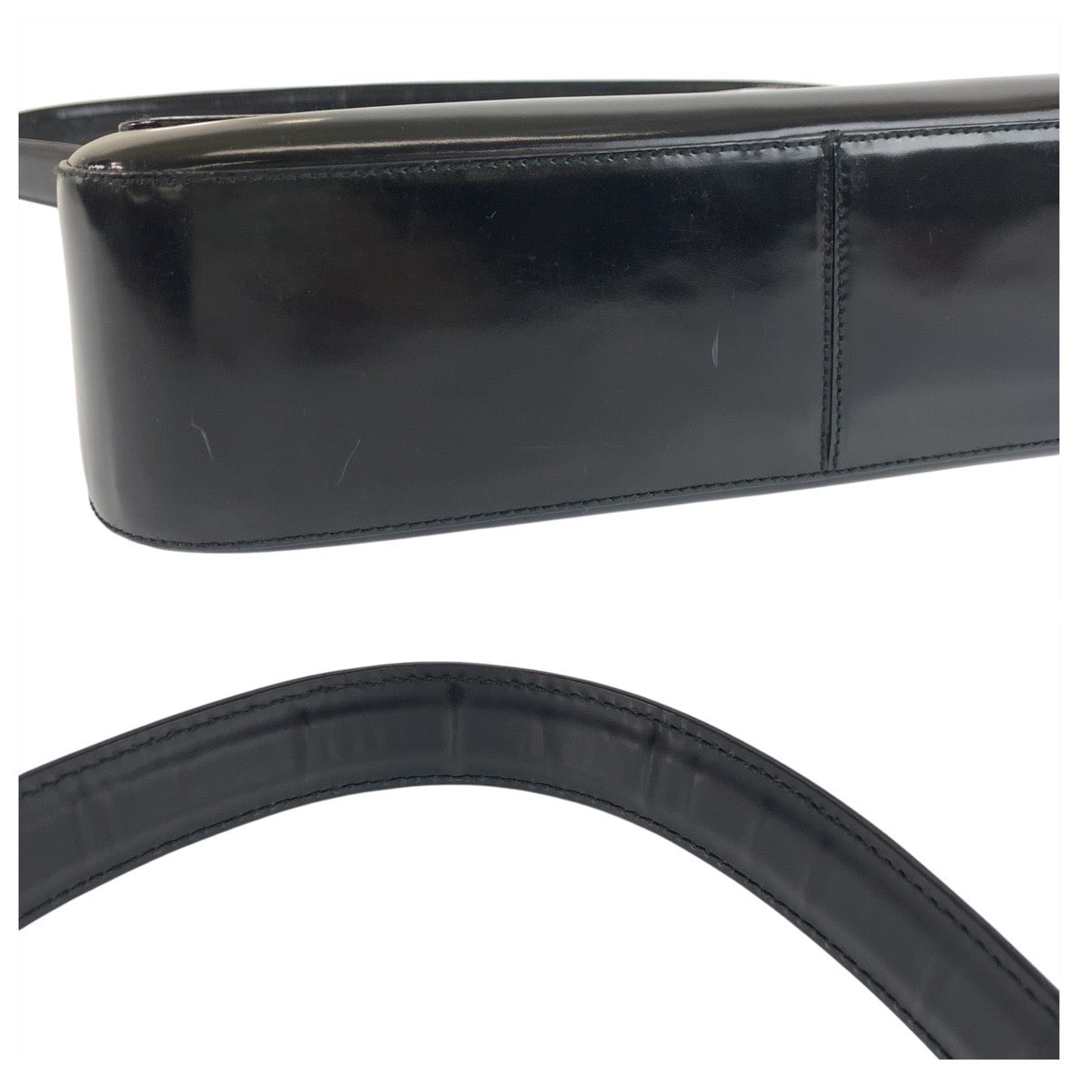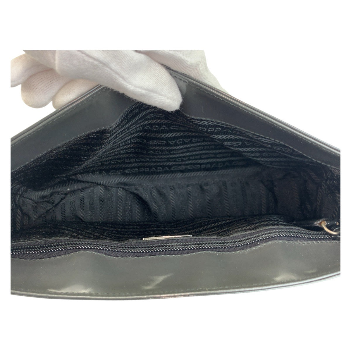 18854 PRADA プラダ ブラック 黒 シルバー金具 エナメル ショルダーバッグ ハンドバッグ レディース ABP42