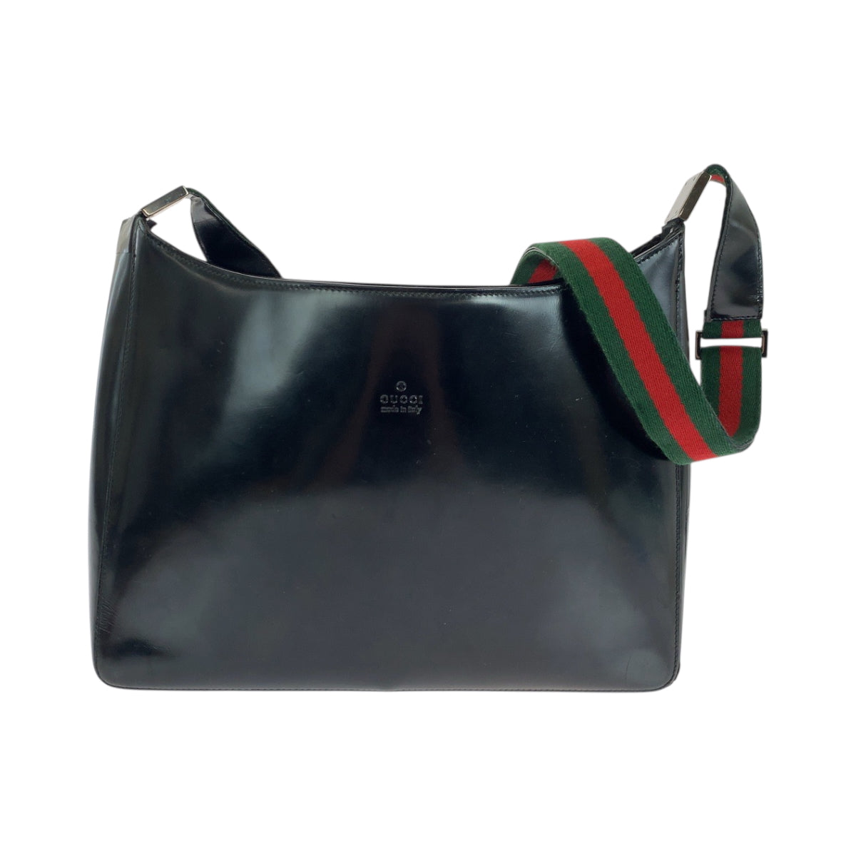 18898 GUCCI グッチ シェリーライン ブラック 黒 シルバー金具 パテントレザー 001 3246 ショルダーバッグ 肩掛け レディース AB38