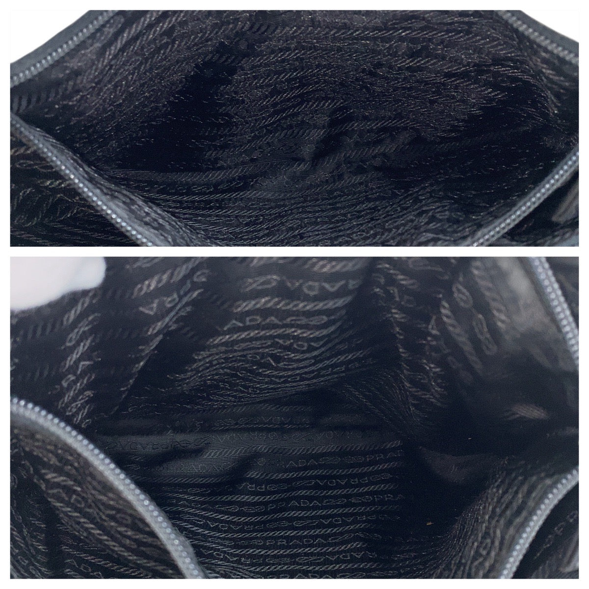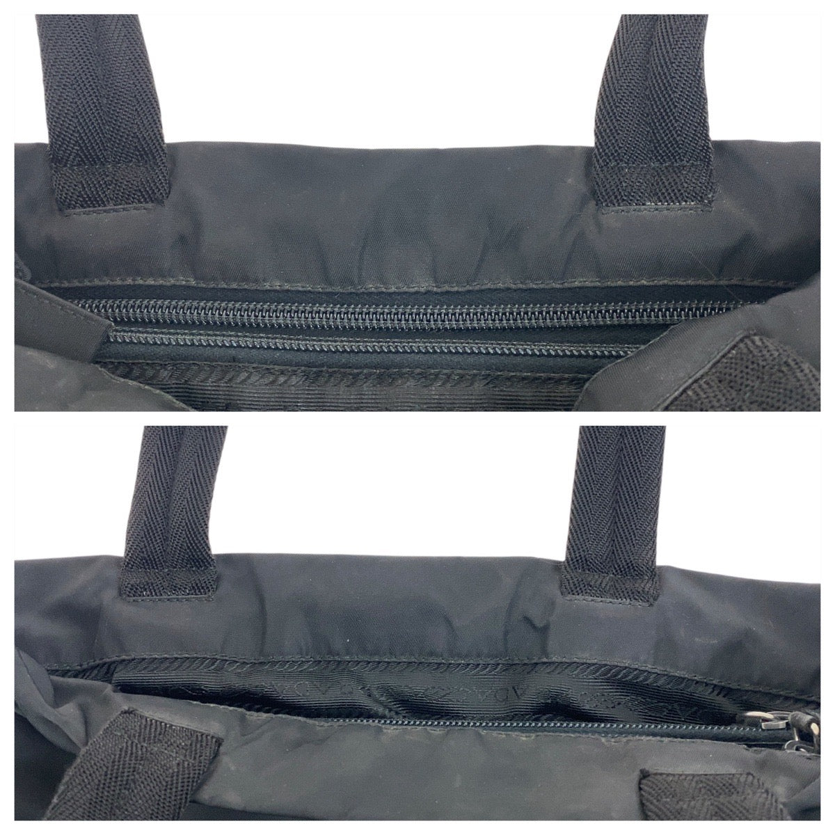 18902 PRADA プラダ テスート 三角ロゴプレート ブラック 黒 シルバー金具 ナイロン / レザー トートバッグ ショルダーバッグ レディース ABP38