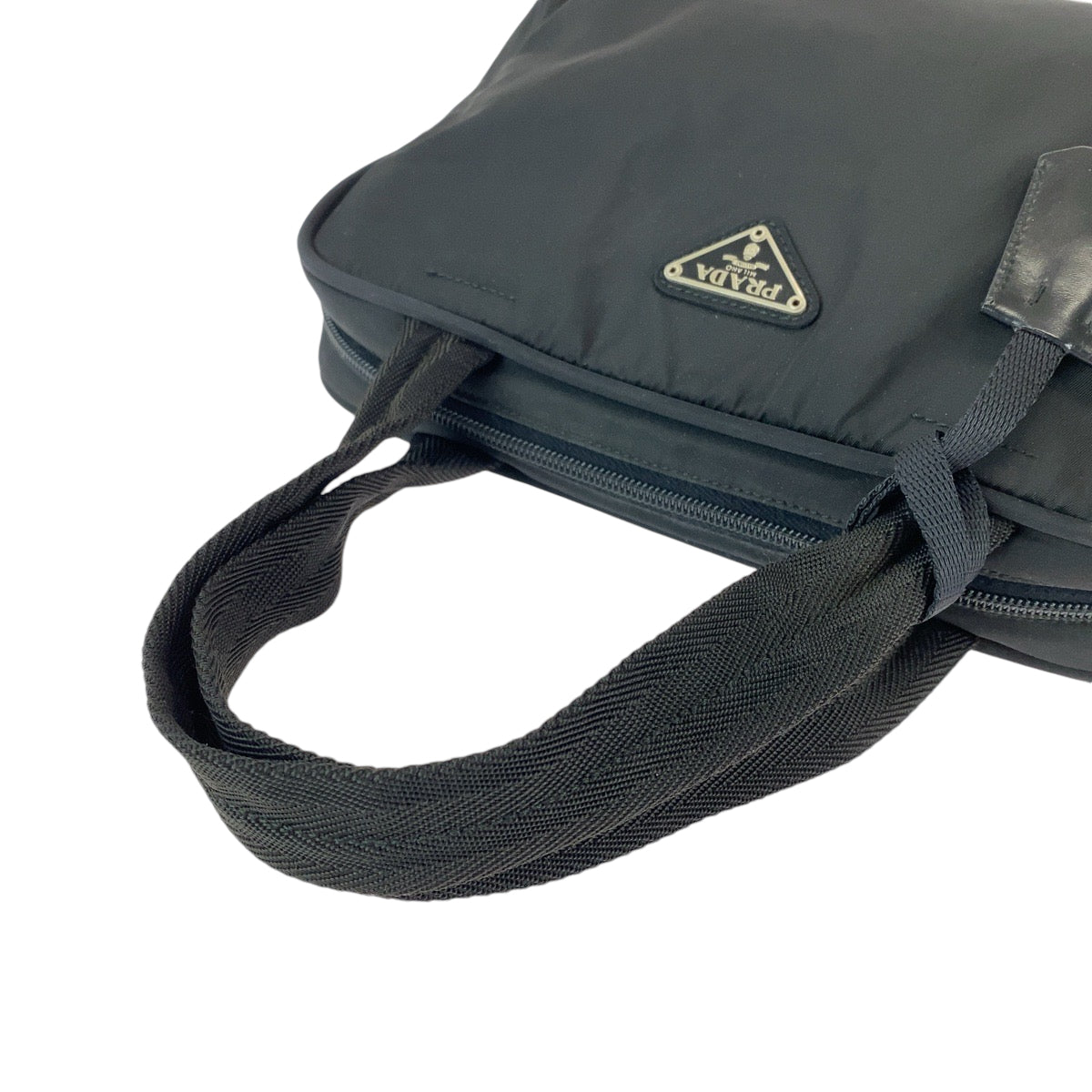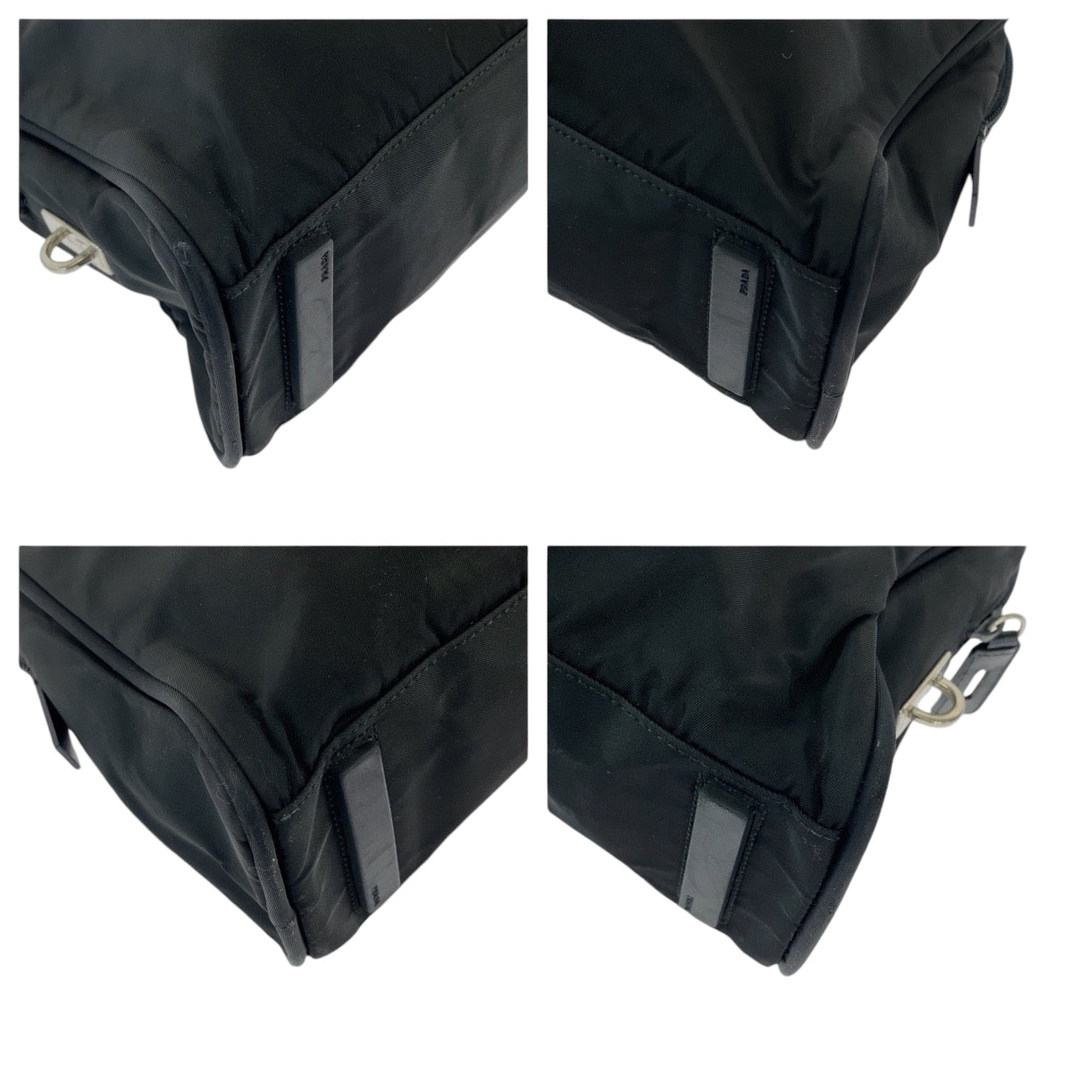18923 PRADA プラダ 三角ロゴプレート ブラック 黒 シルバー金具 ナイロン ハンドバッグ ショルダーバッグ レディース AB