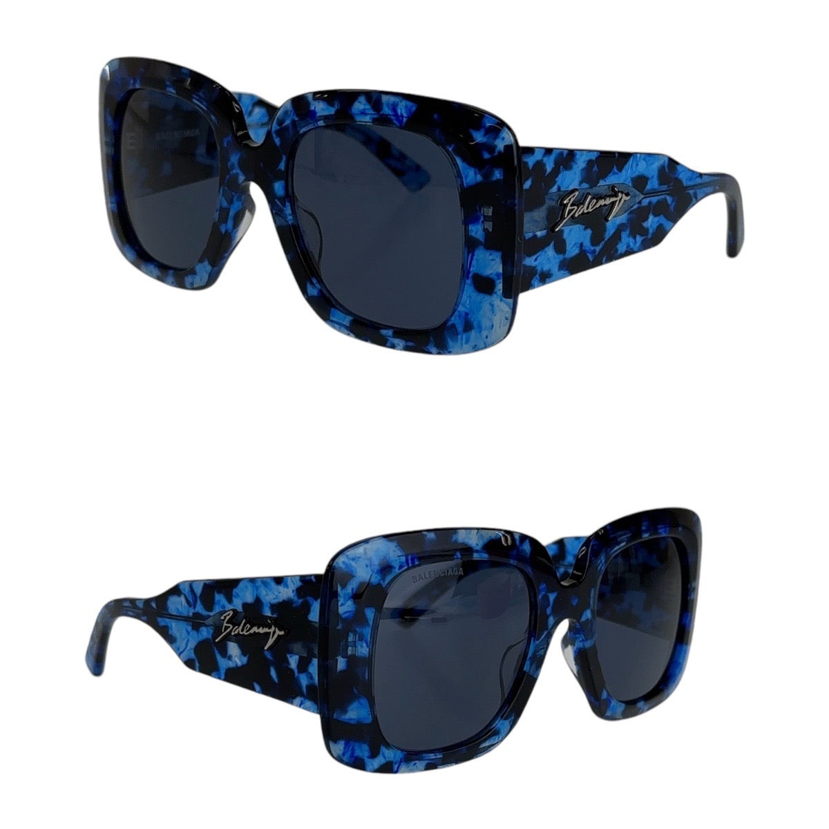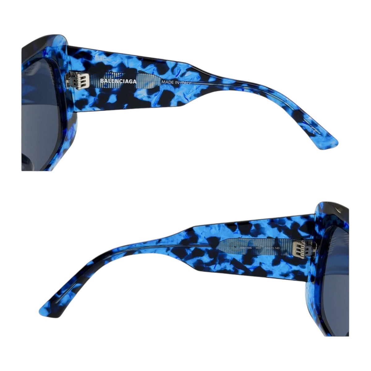 18934 BALENCIAGA バレンシアガ スクエアフルリム 男女兼用 ブルー マーブル シルバー金具 プラスチック BB0119S 003 53□23 140 サングラス スクエア メンズ A