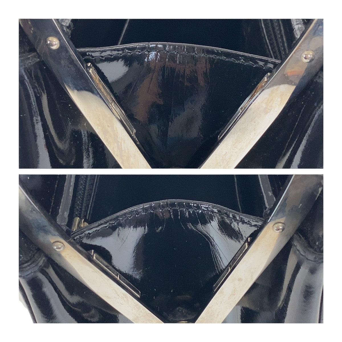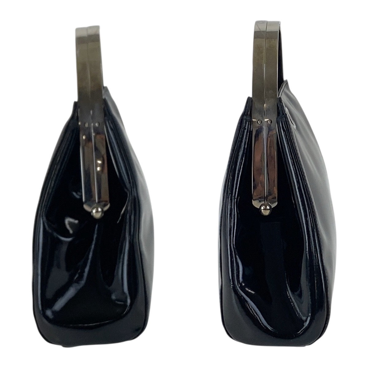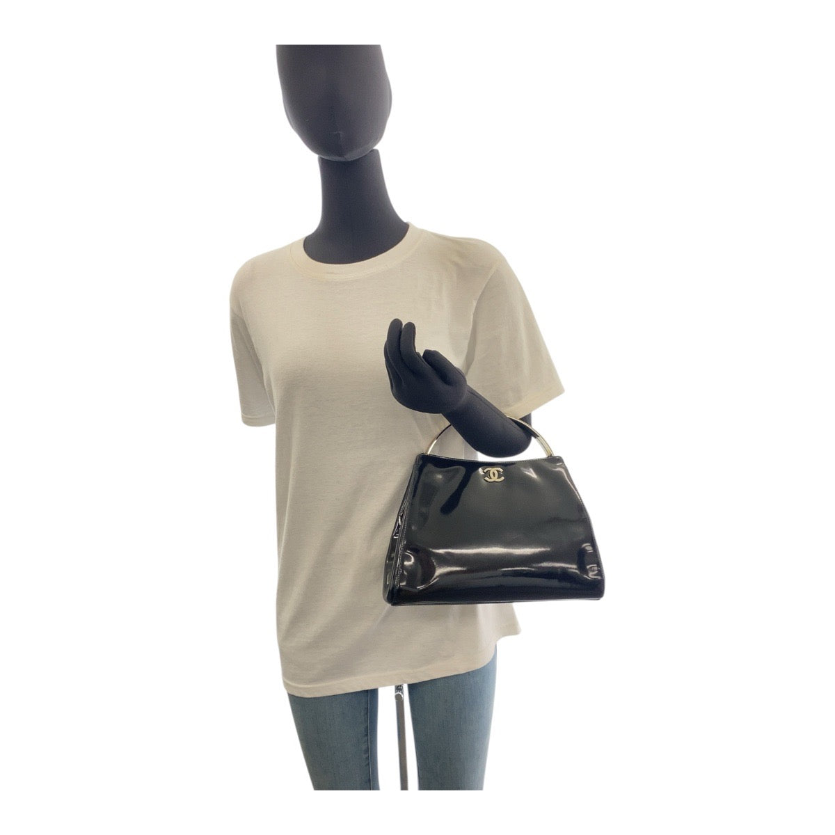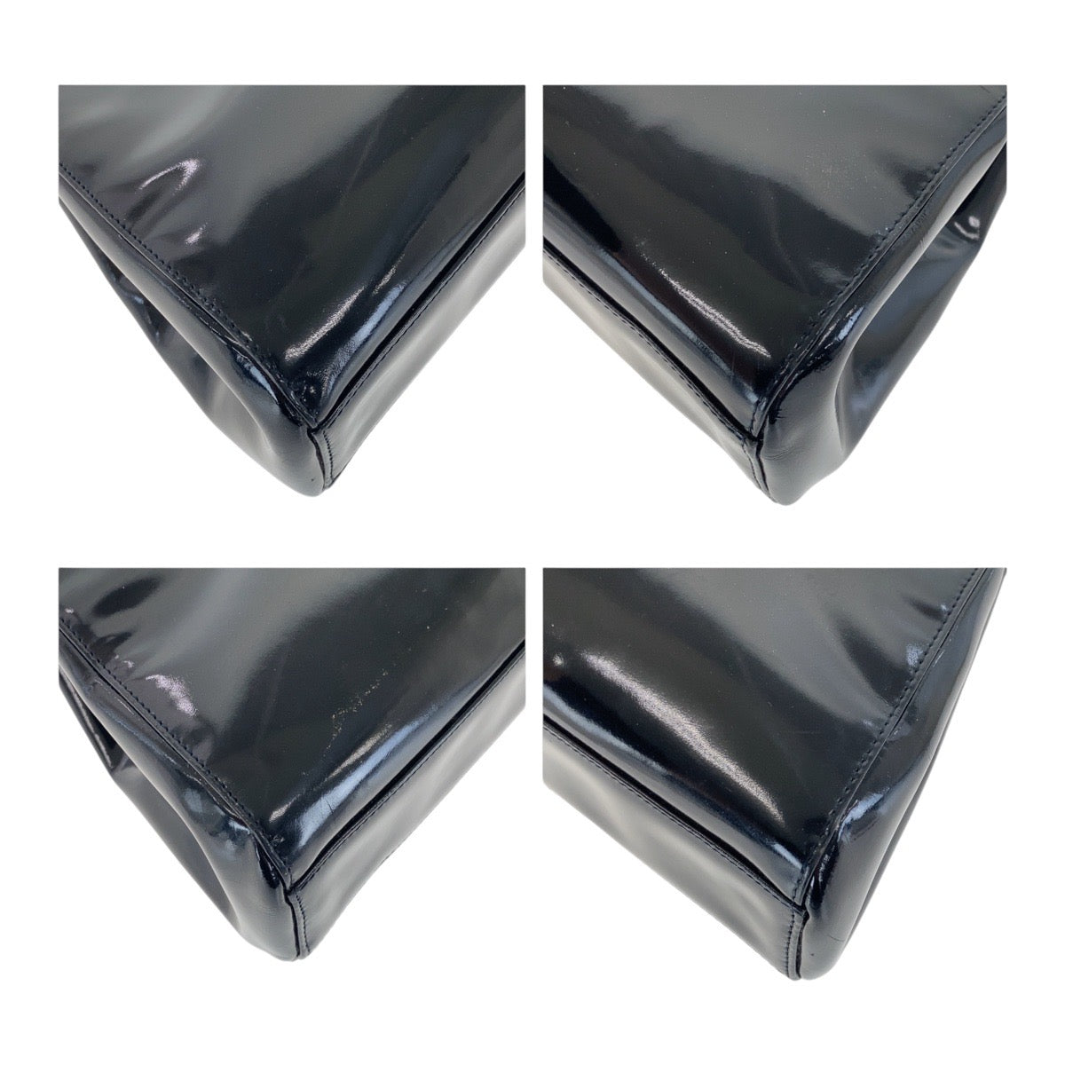 18968 CHANEL シャネル ヴィンテージ ココマーク ブラック 黒 シルバー金具 エナメル ハンドバッグ バニティバッグ アクセサリーポーチ レディース ABP180