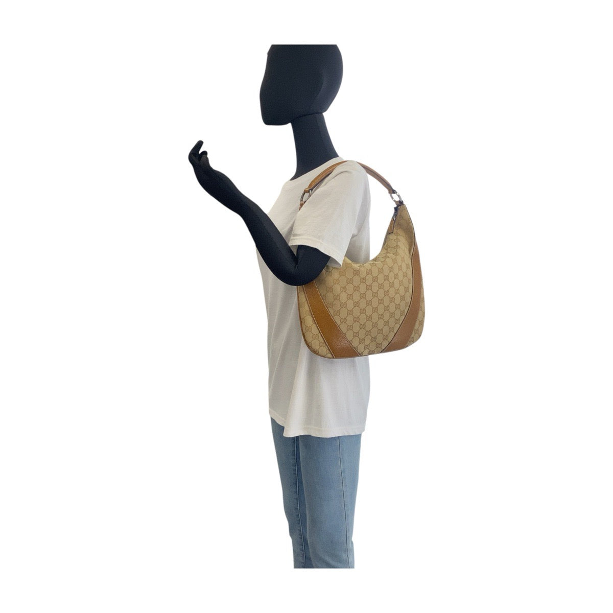 18971 GUCCI グッチ ベージュ ブラウン シルバー金具 GGキャンバス / レザー 124357 ショルダーバッグ ホーボー レディース ABP45