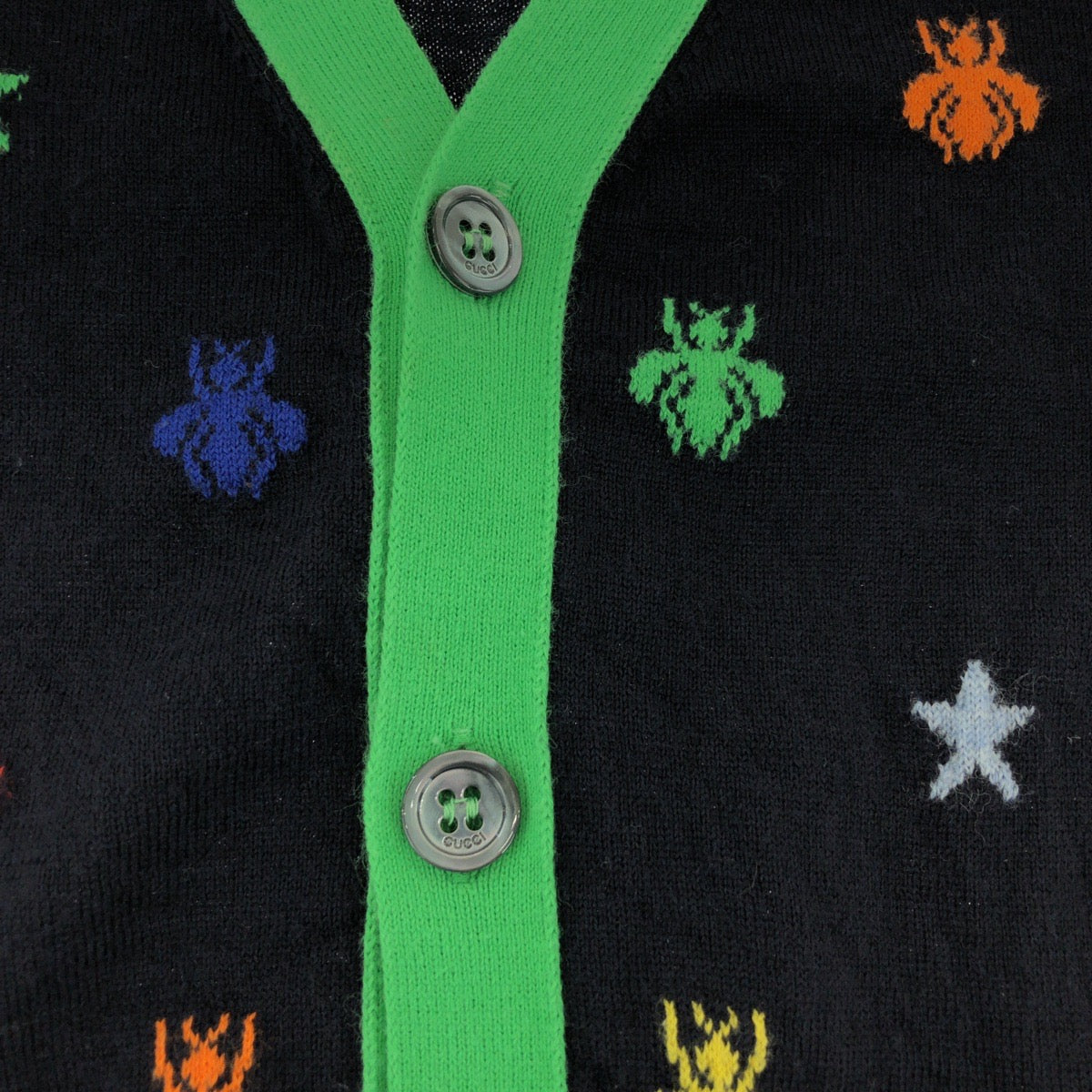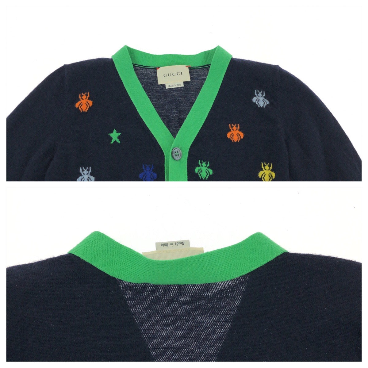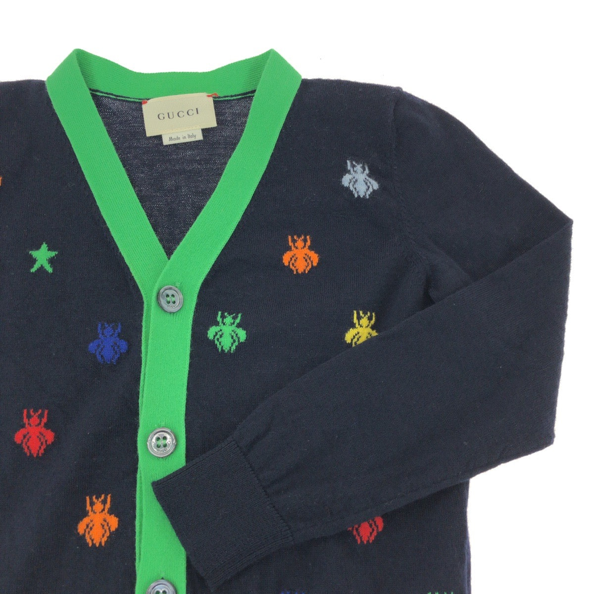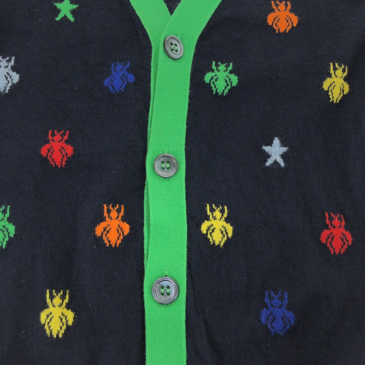 19070 GUCCI グッチ 蜂 ビー エンブロイダリー サイズ5 ネイビー マルチカラー コットン カーディガン キッズ SA38