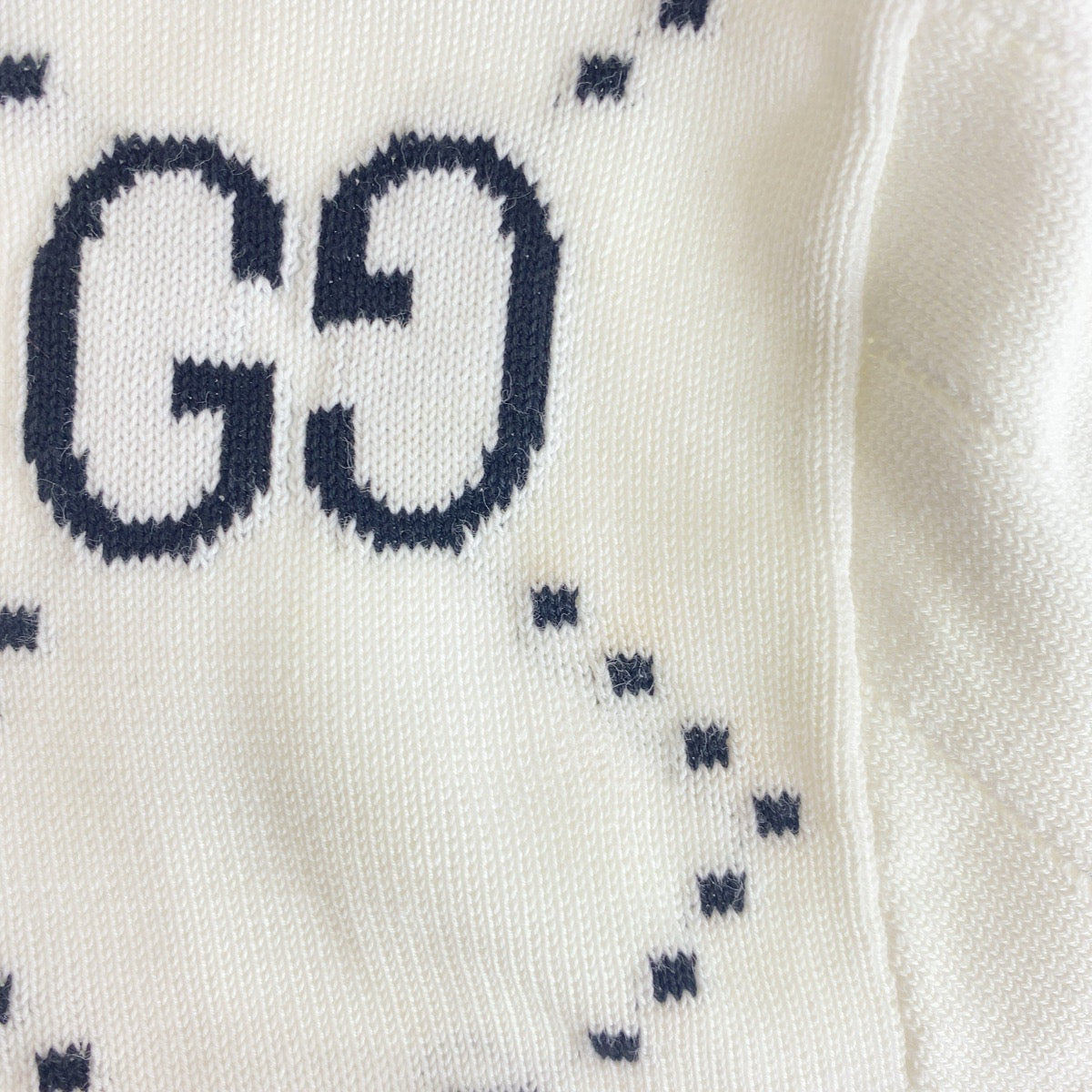 19071 GUCCI グッチ GGインターシャ ホワイト ブラック コットン ポロシャツ メンズ SA54