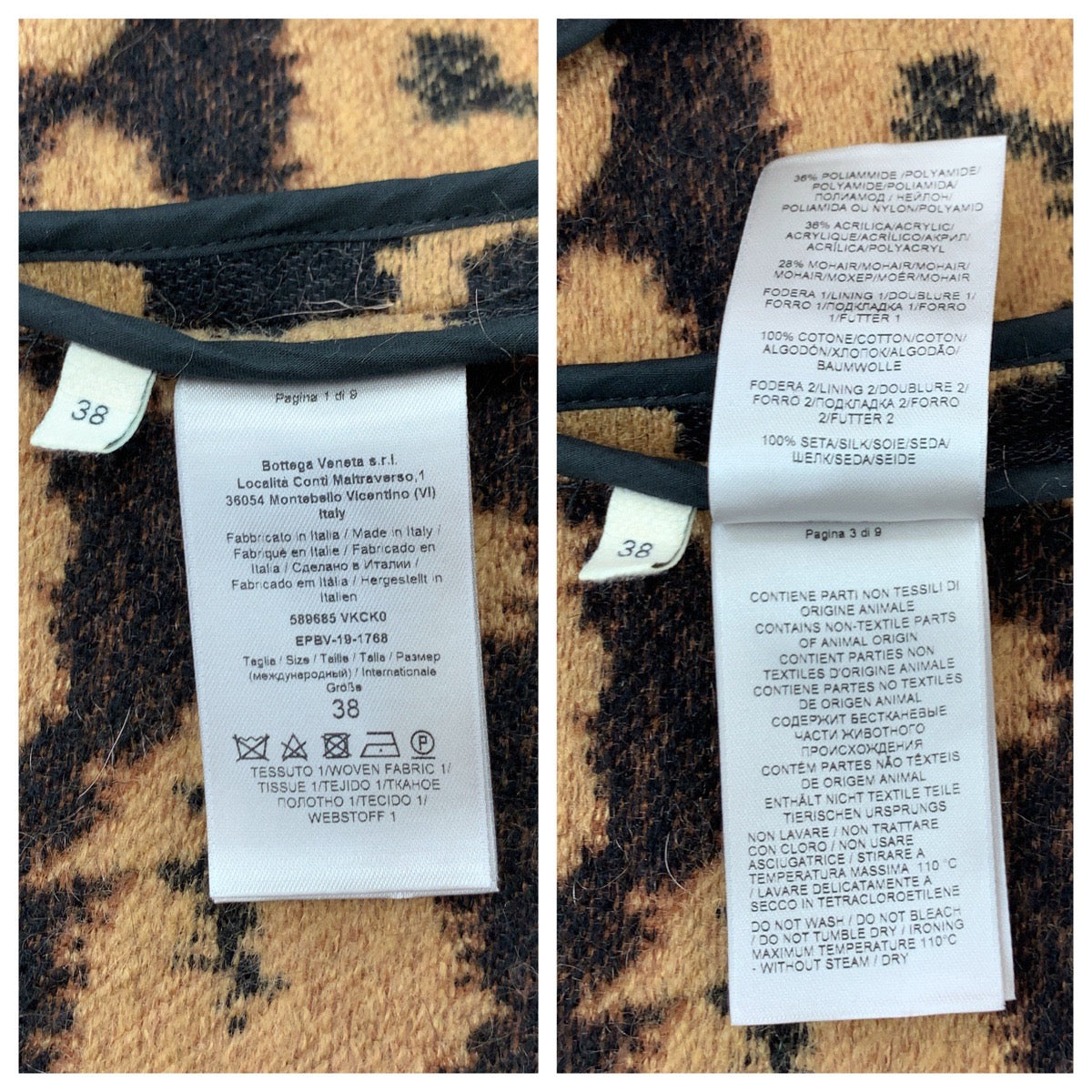 19112 BOTTEGAVENETA ボッテガヴェネタ レオパード サイズ38 ブラウン ナイロン / アクリル / モヘア コート テーラードコート チェスターコート レディース SA148