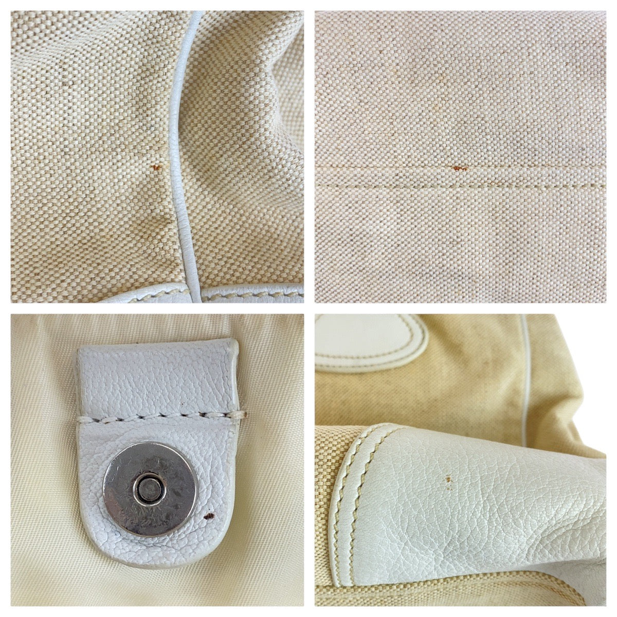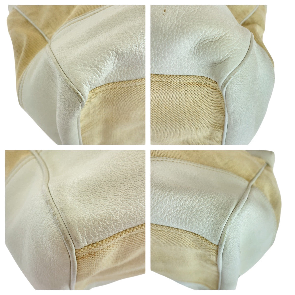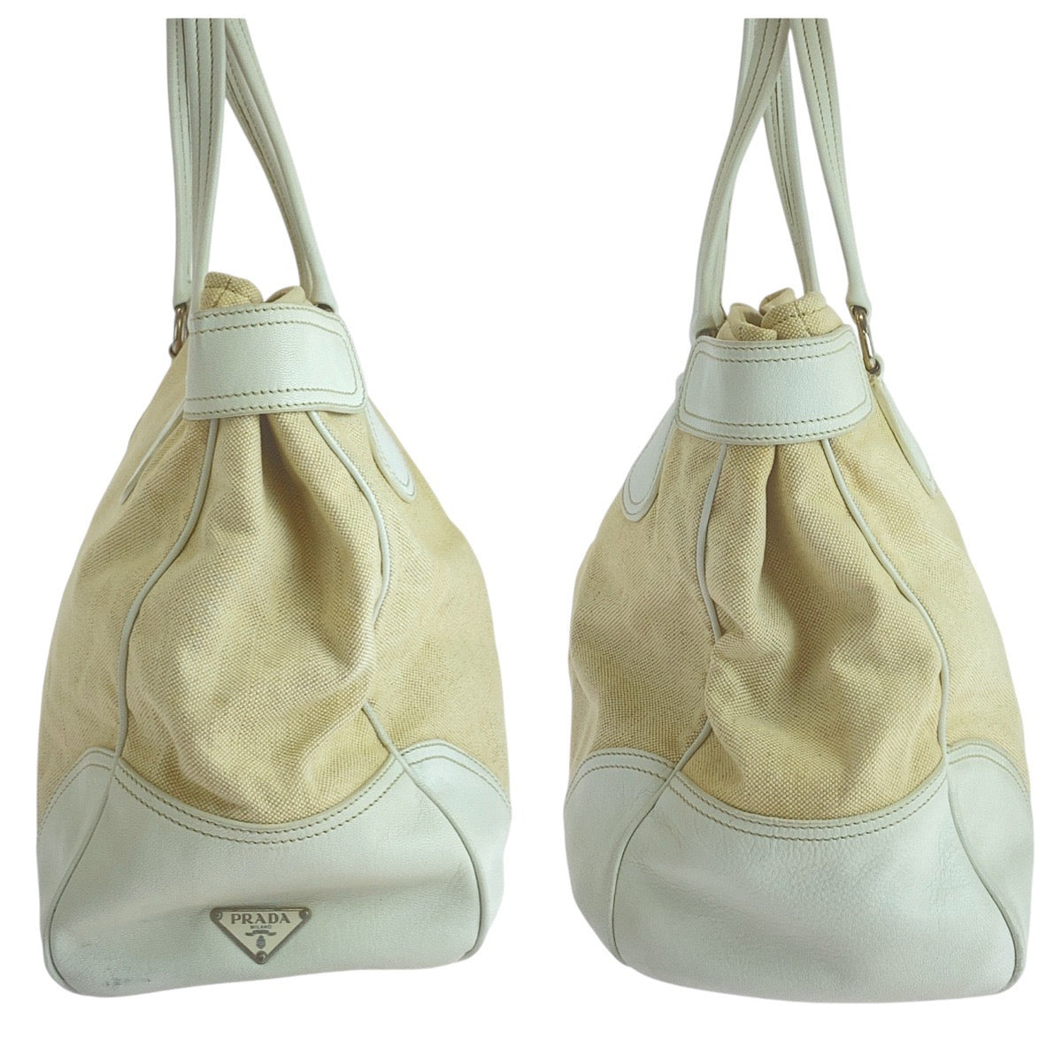 19138 PRADA プラダ 三角ロゴプレート ホワイト アイボリー キャンバス / レザー トートバッグ ショルダーバッグ レディース AB27