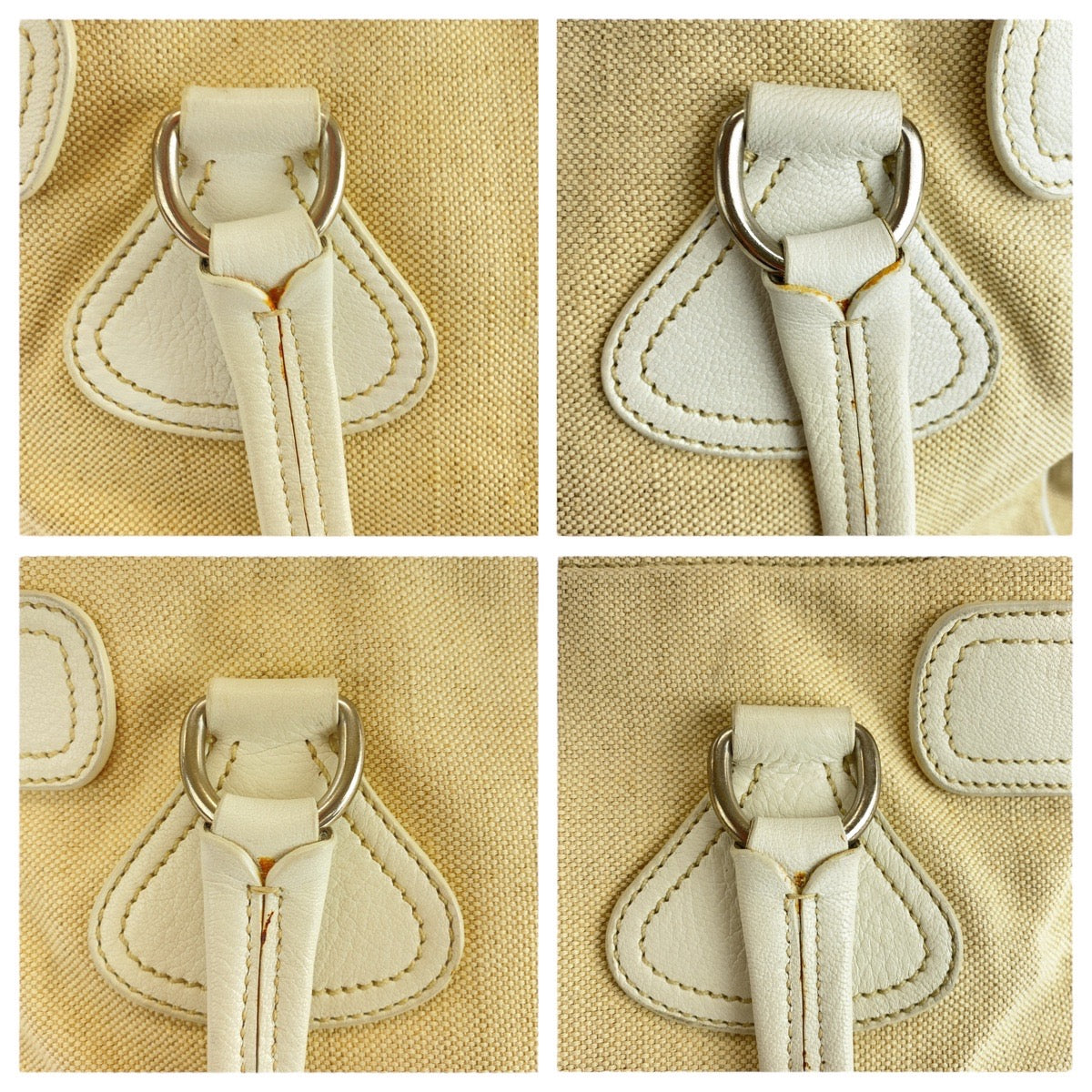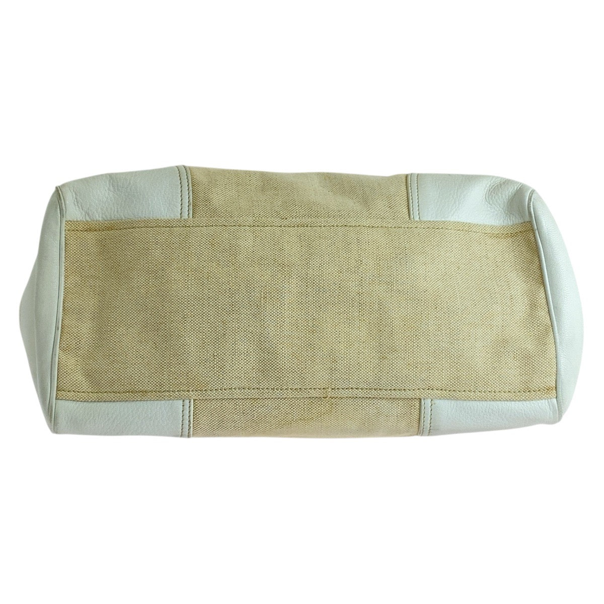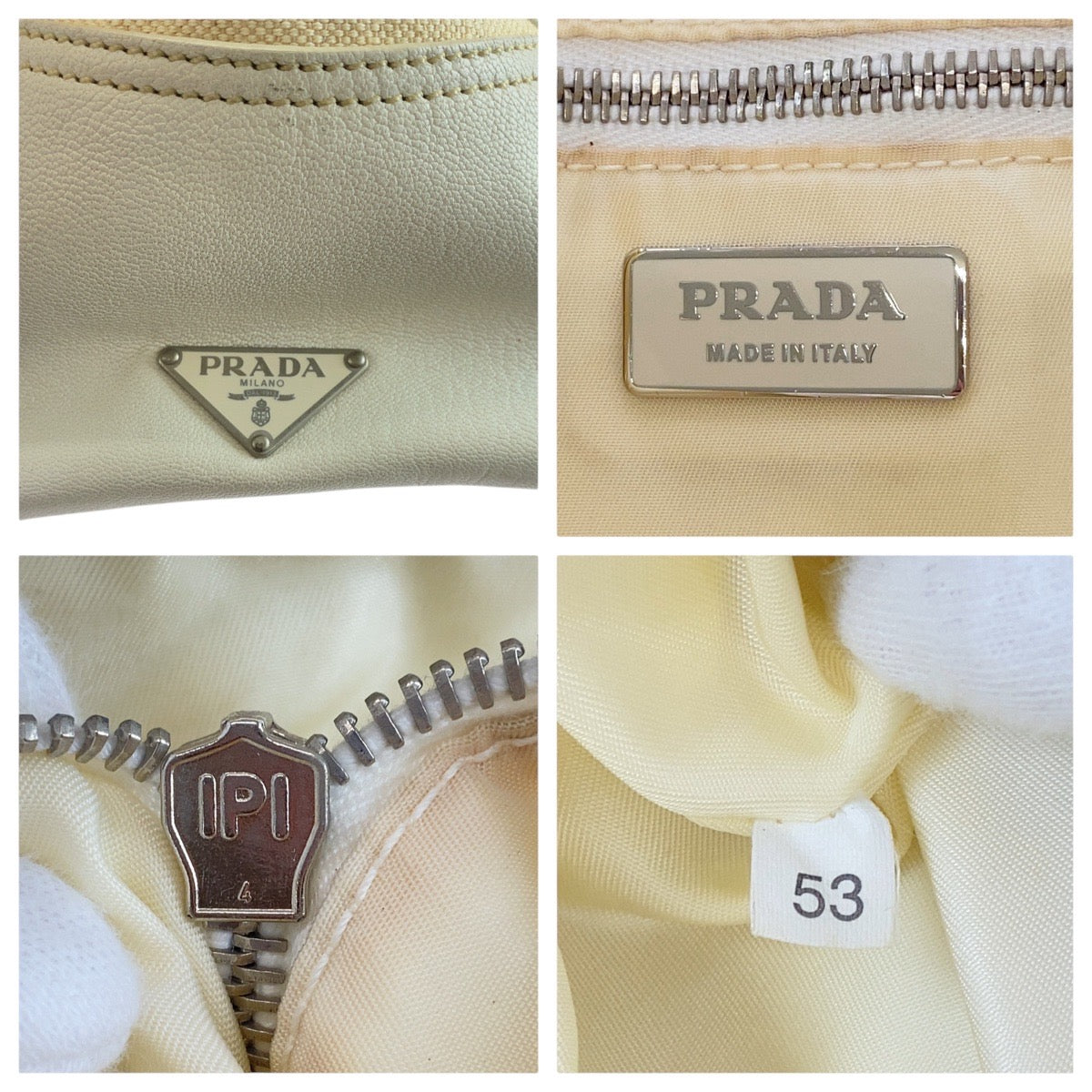 19138 PRADA プラダ 三角ロゴプレート ホワイト アイボリー キャンバス / レザー トートバッグ ショルダーバッグ レディース AB27