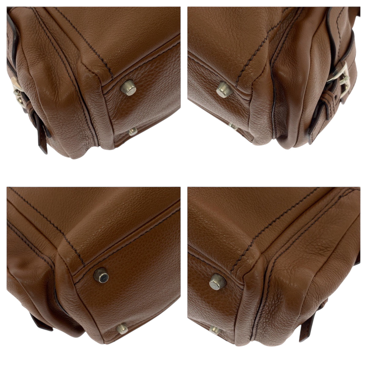19203 PRADA プラダ ヴィッテロダイノ 三角ロゴプレート ブラウン シルバー金具 レザー BR3250 トートバッグ ショルダーバッグ レディース A75