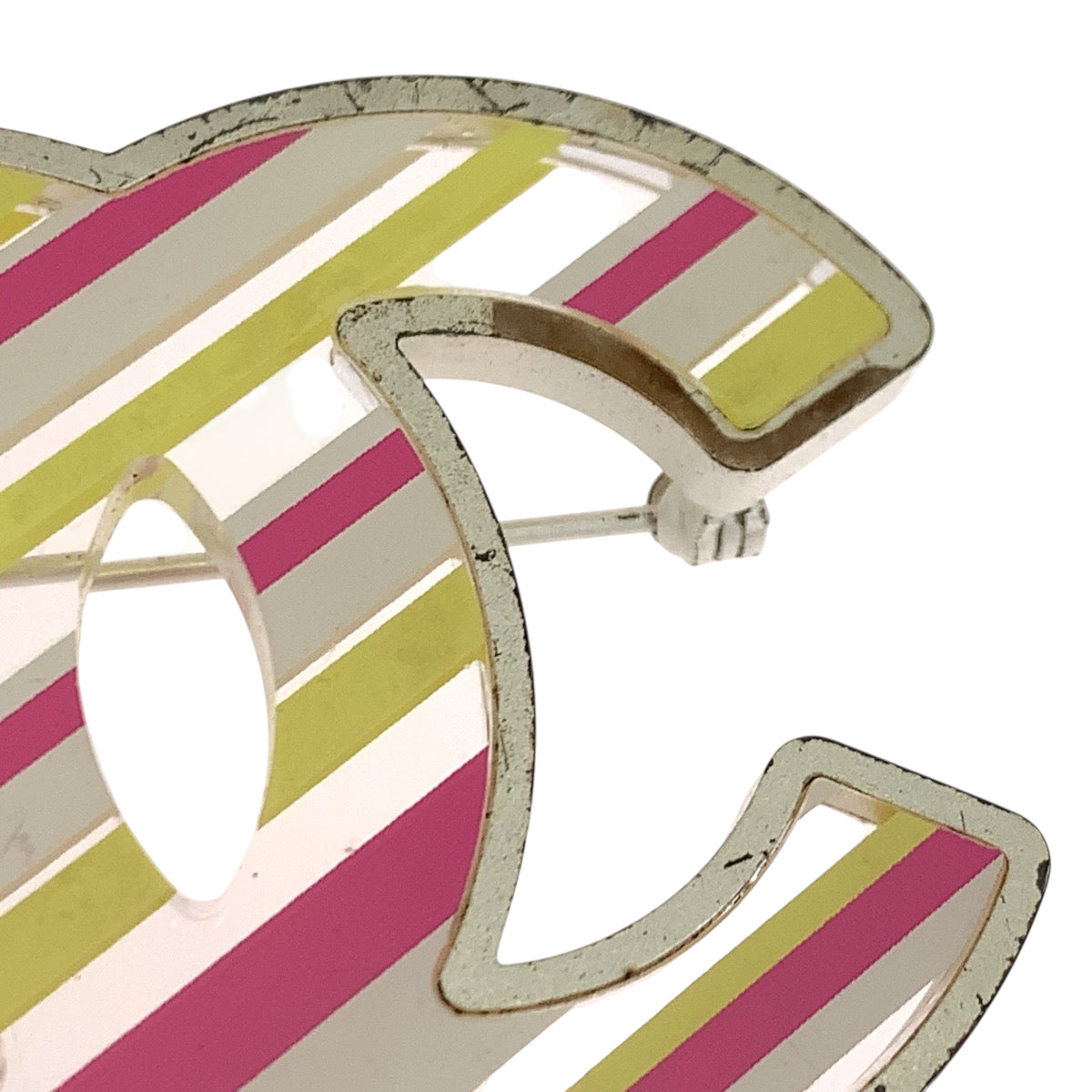 19265 CHANEL シャネル 04Cストライプ ココマーク シルバー マルチカラー アクリル / メッキ ブローチ AB38