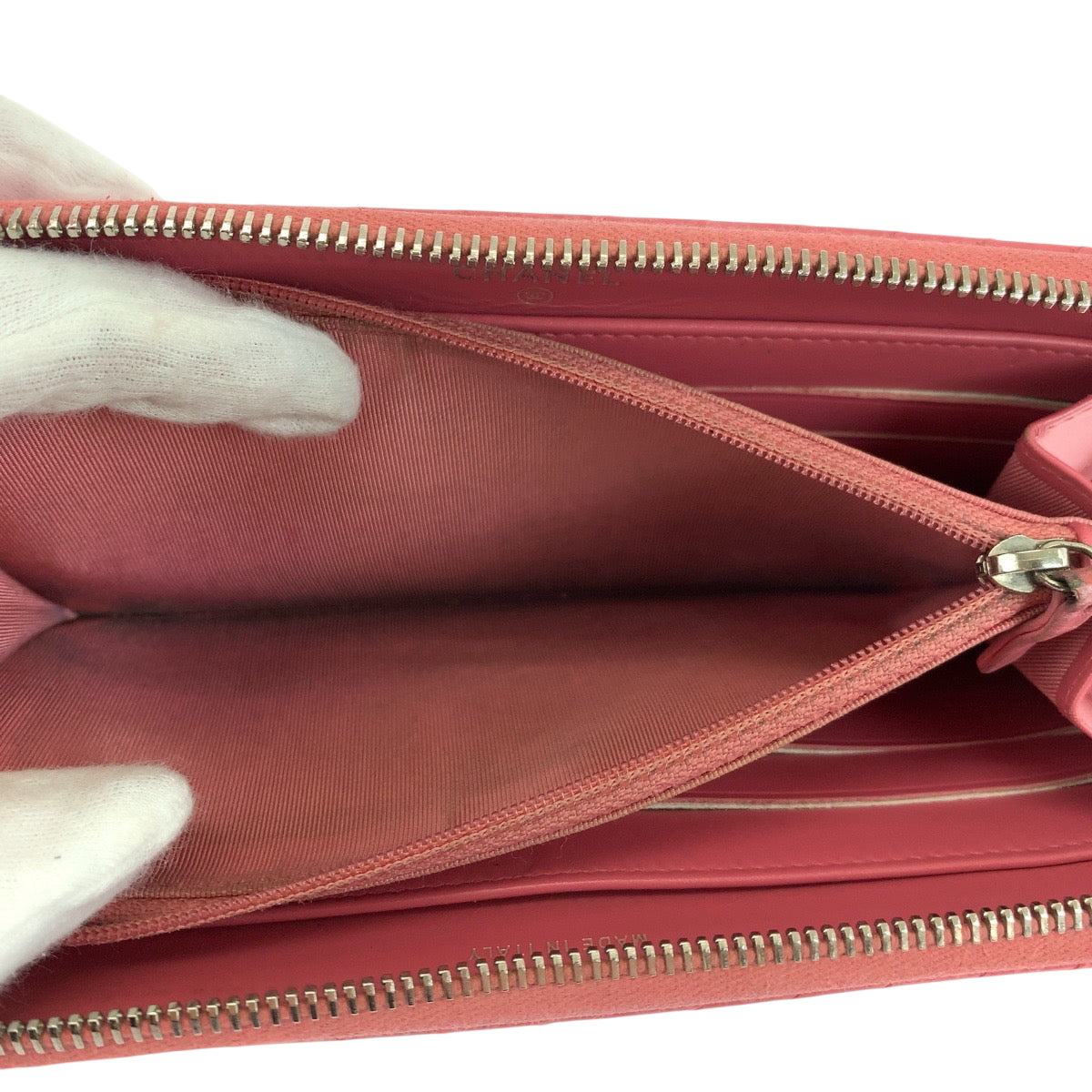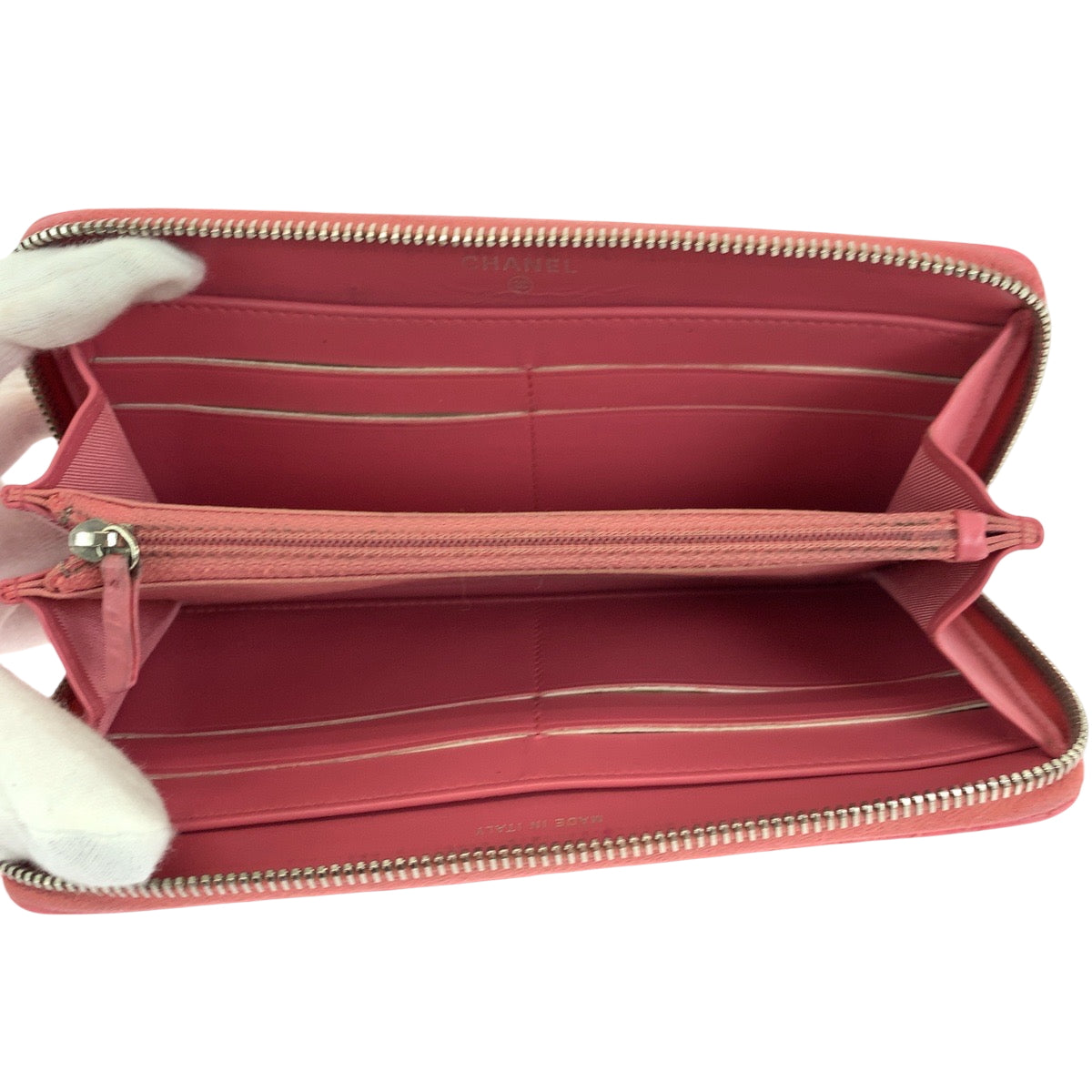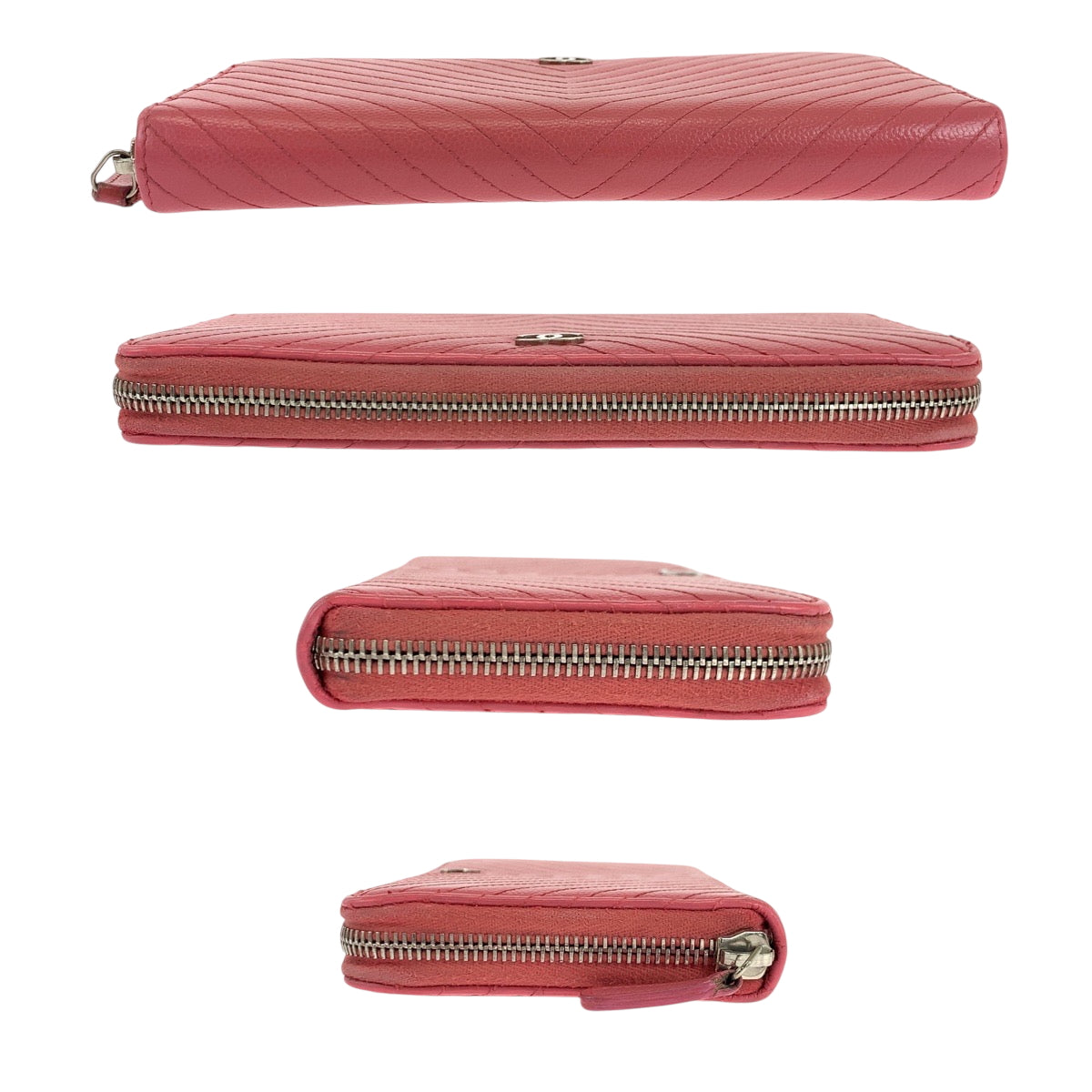 19277 CHANEL シャネル Vシェブロン Vステッチ ココマーク ピンク ゴールド金具 キャビアスキン 長財布 ラウンドファスナー レディース ABP59