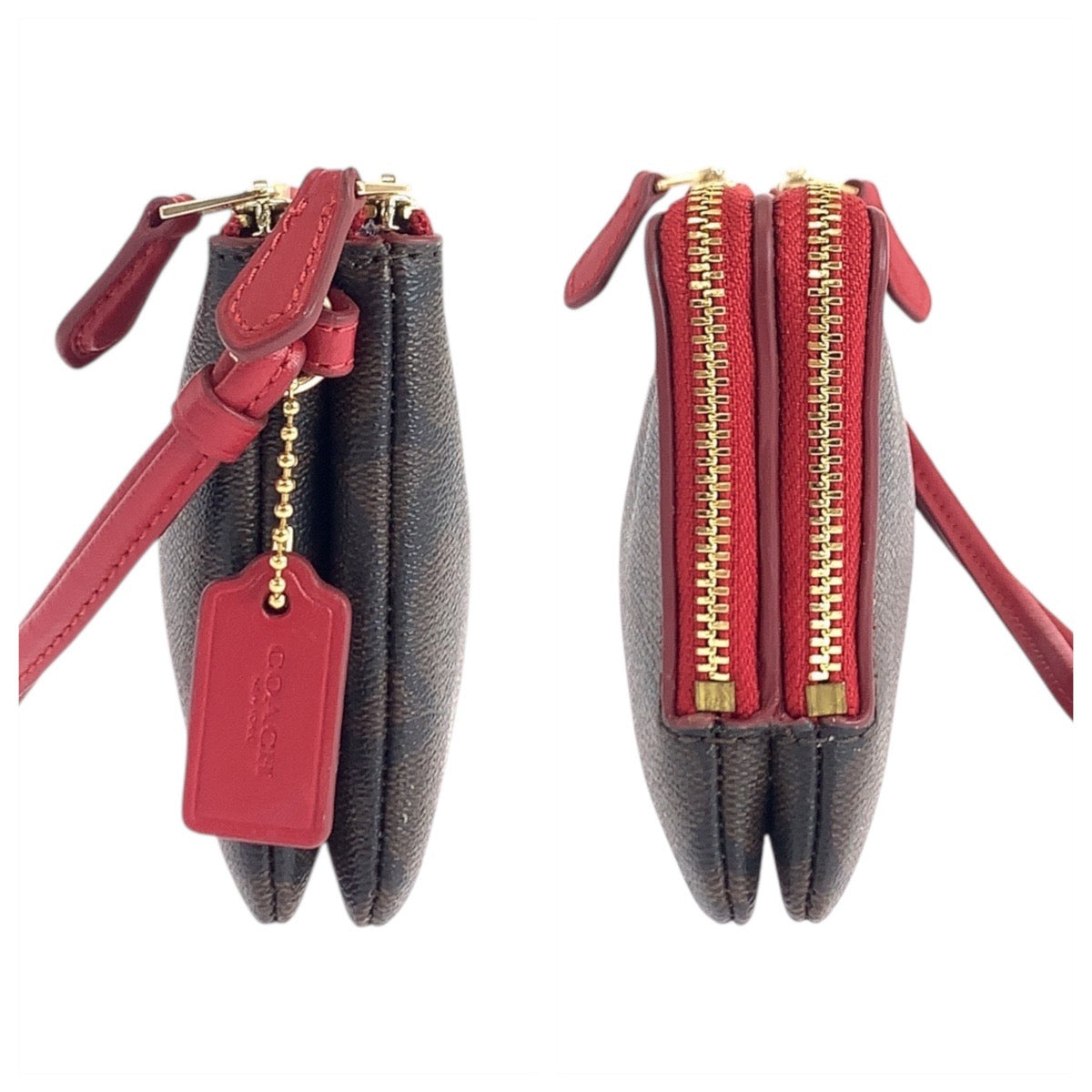 19324 COACH コーチ シグネチャー ブラウン レッド ゴールド金具 PVC / レザー F87591 ポーチ 小物入れ レディース A2