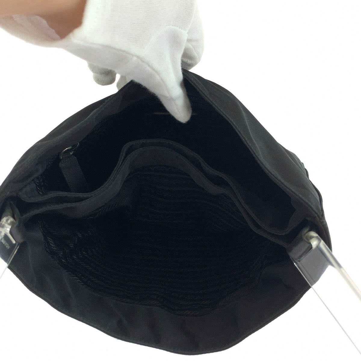 19347 PRADA プラダ テスート 三角ロゴプレート ブラック 黒 シルバー金具 ナイロン / プラスチック ショルダーバッグ 肩掛け レディース ABP22