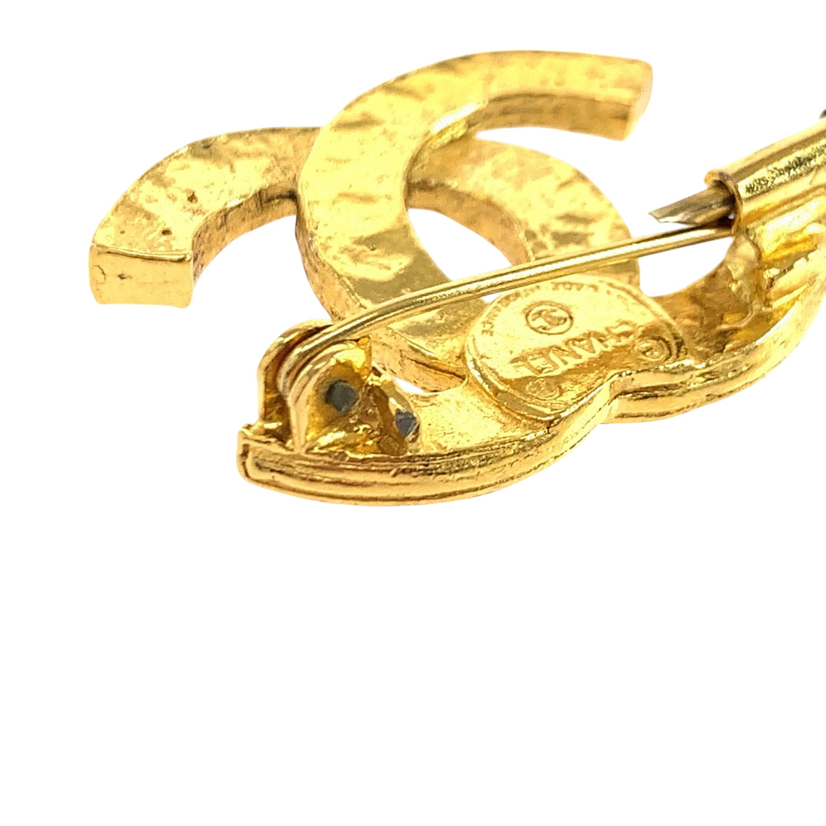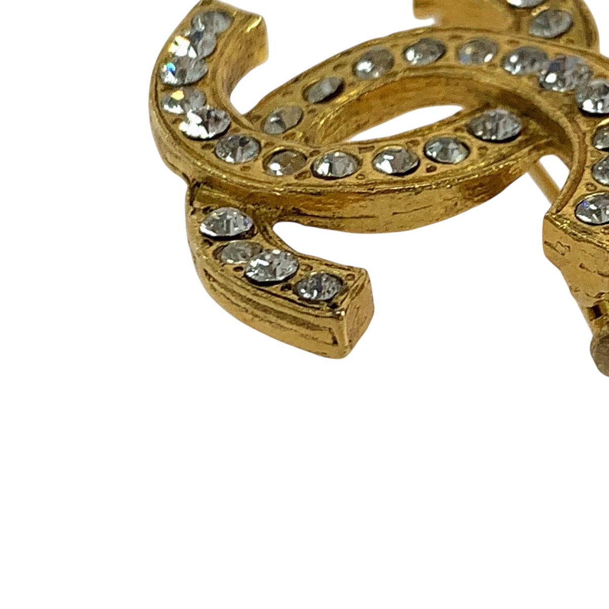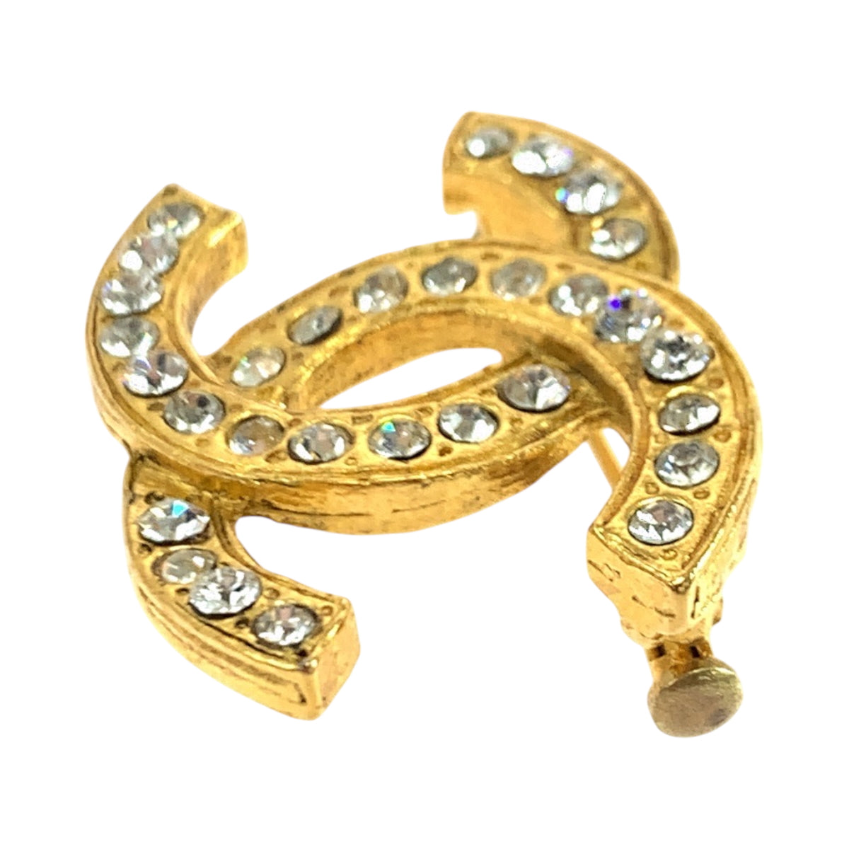 19385 CHANEL シャネル ヴィンテージ ココマーク ラインストーン ゴールド メッキ ブローチ レディース AB55