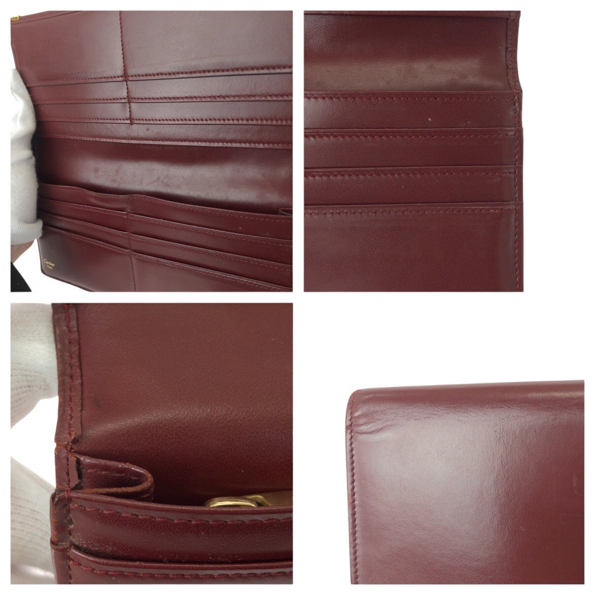 19397 CARTIER カルティエ ヴィンテージ マストライン ワインレッド ゴールド金具 レザー 長財布 ロングウォレット レディース B7