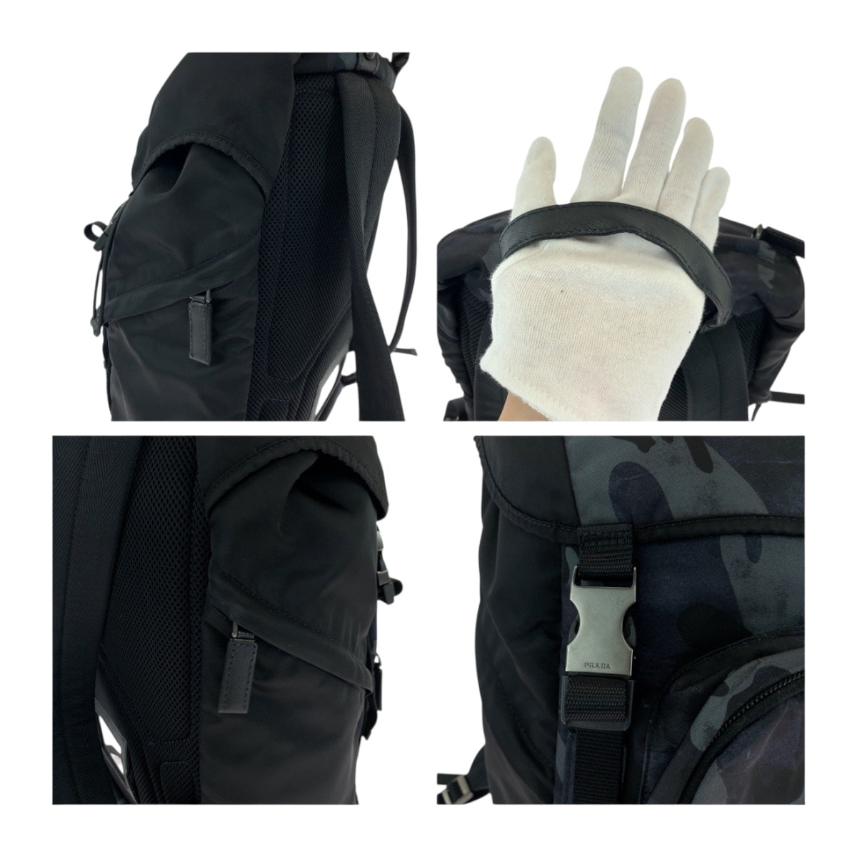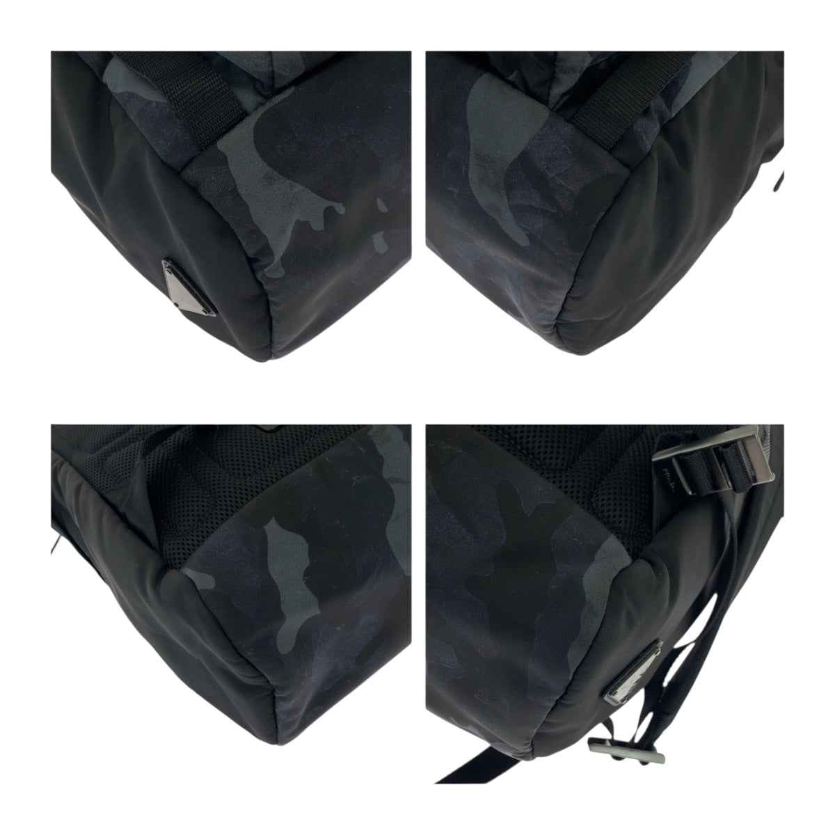 19541 PRADA プラダ テスート カモフラ柄 三角ロゴプレート ブルー ブラック シルバー金具 ナイロン V135 リュックサック バックパック メンズ A89