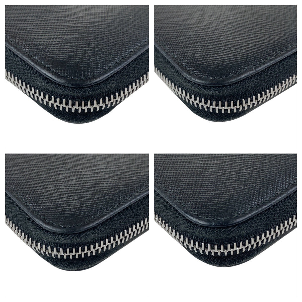 19569 PRADA プラダ サフィアーノ ロゴ ブラック 黒 シルバー金具 レザー 長財布 ロングウォレット レディース ABP32