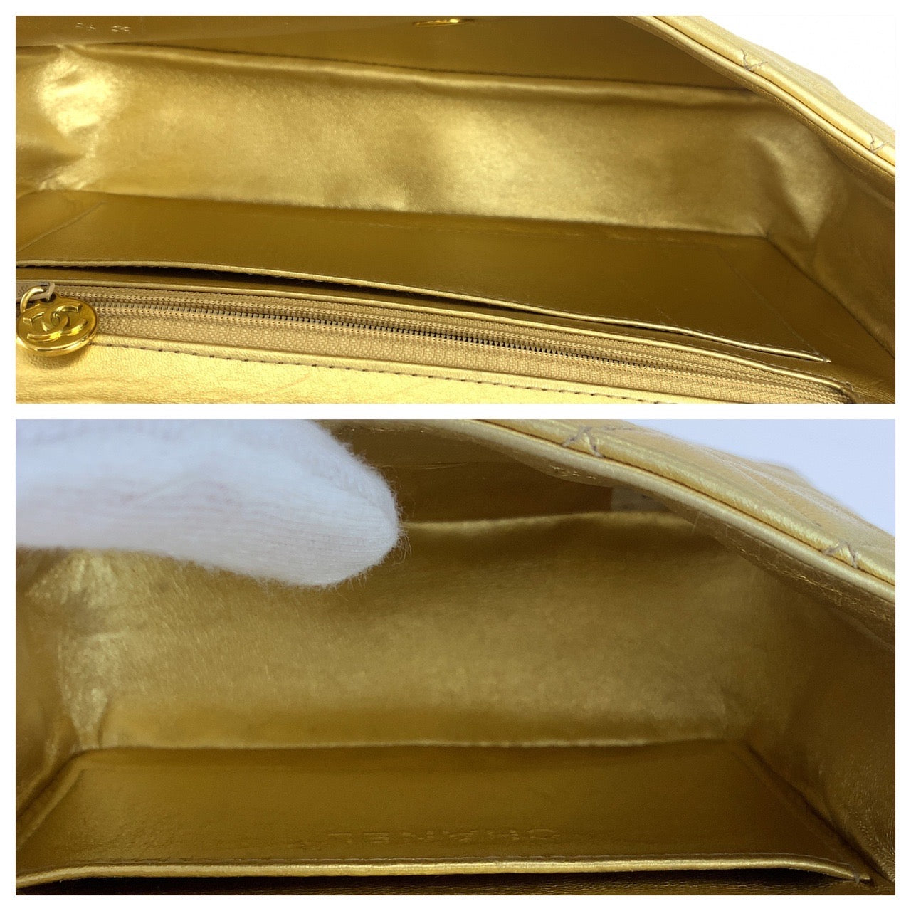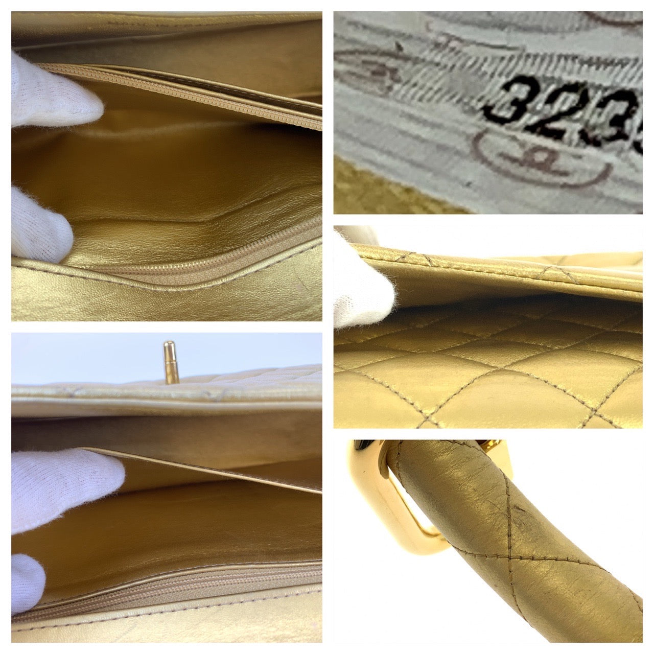 19606 CHANEL シャネル ヴィンテージ マトラッセ 親子バッグ ココマーク ターンロック カラビナ ゴールド ラムスキン ハンドバッグ バニティバッグ レディース ABP1300