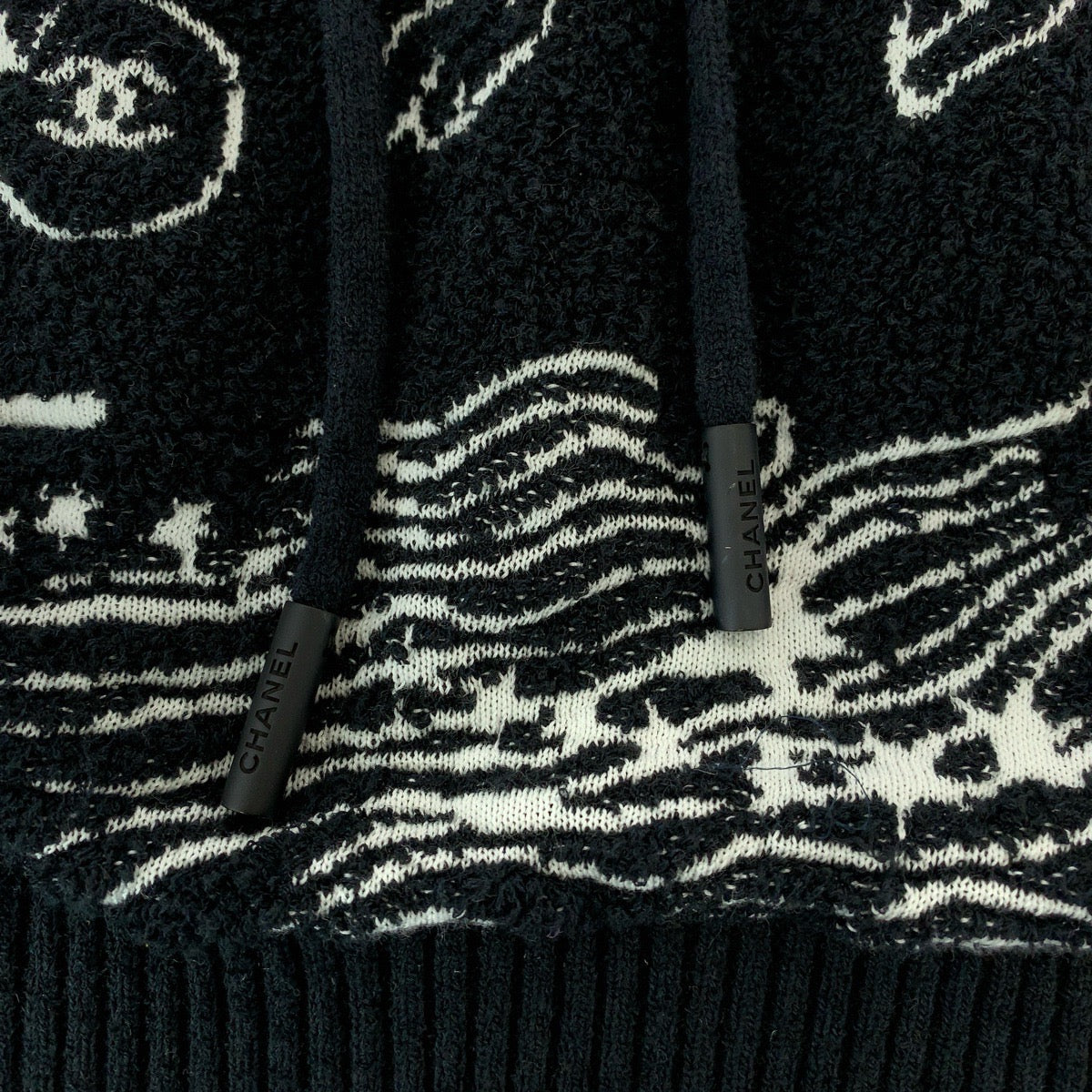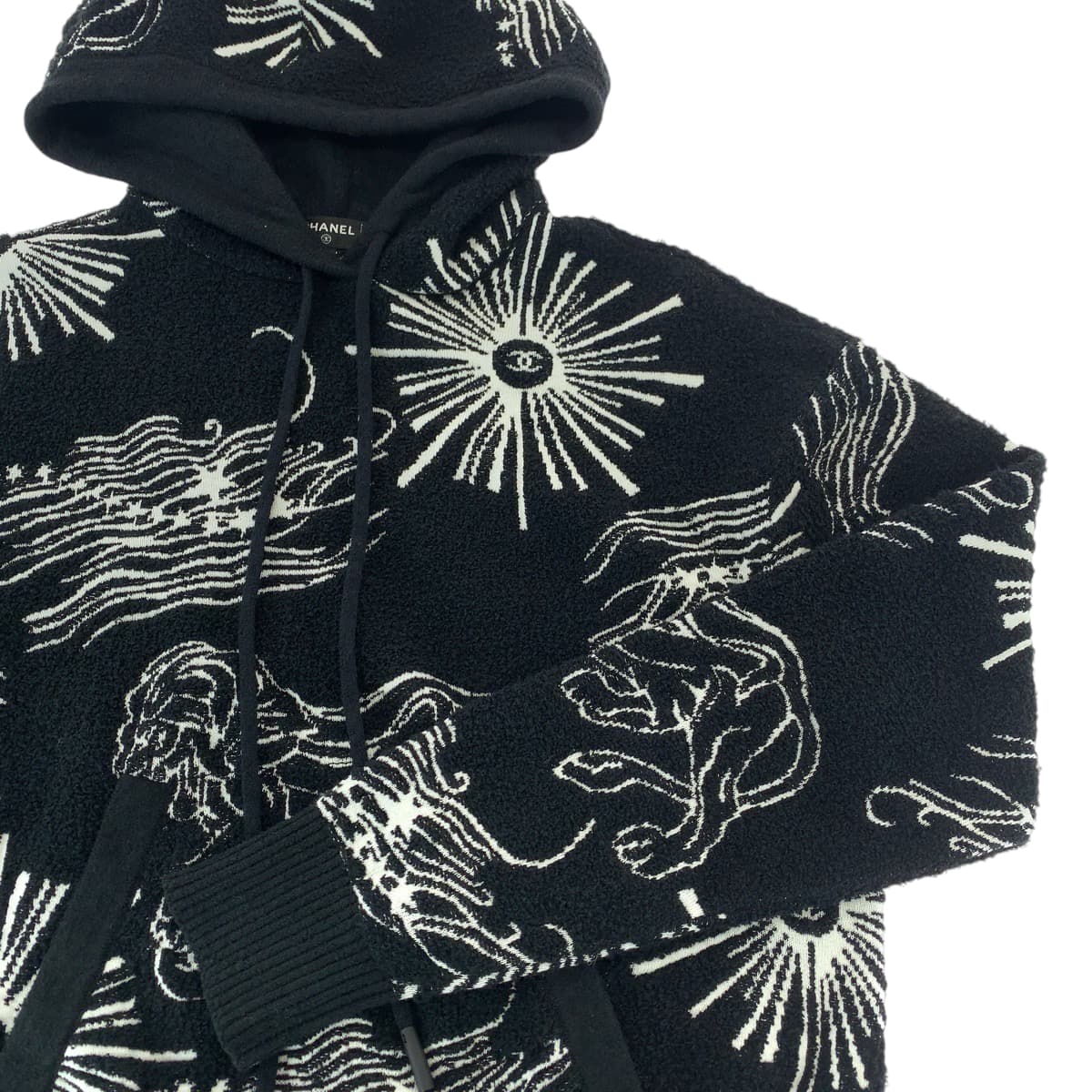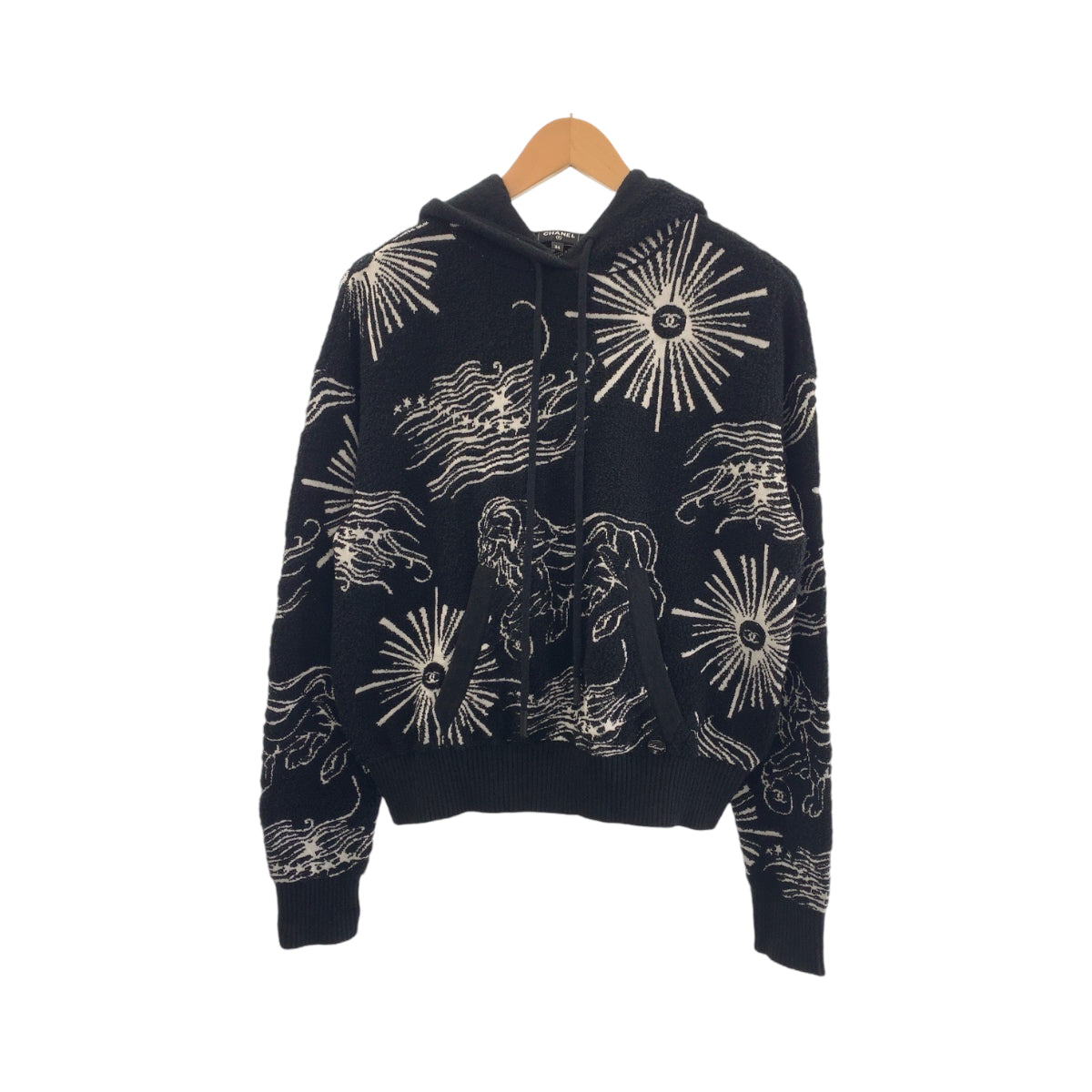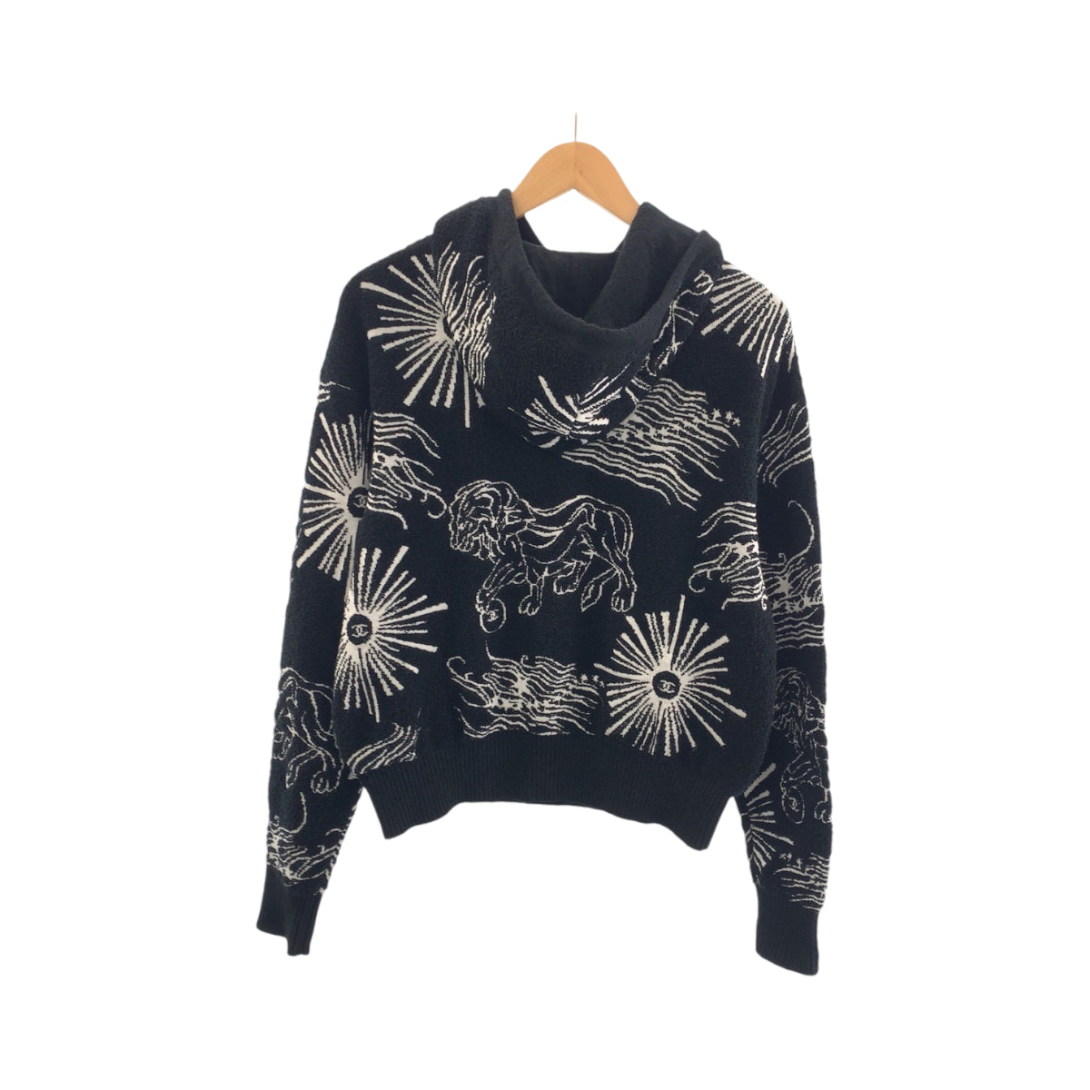 19612 CHANEL シャネル ライオン ココマーク サイズ34 ブラック 黒 ホワイト コットン P72134K10333 パーカー レディース SA212