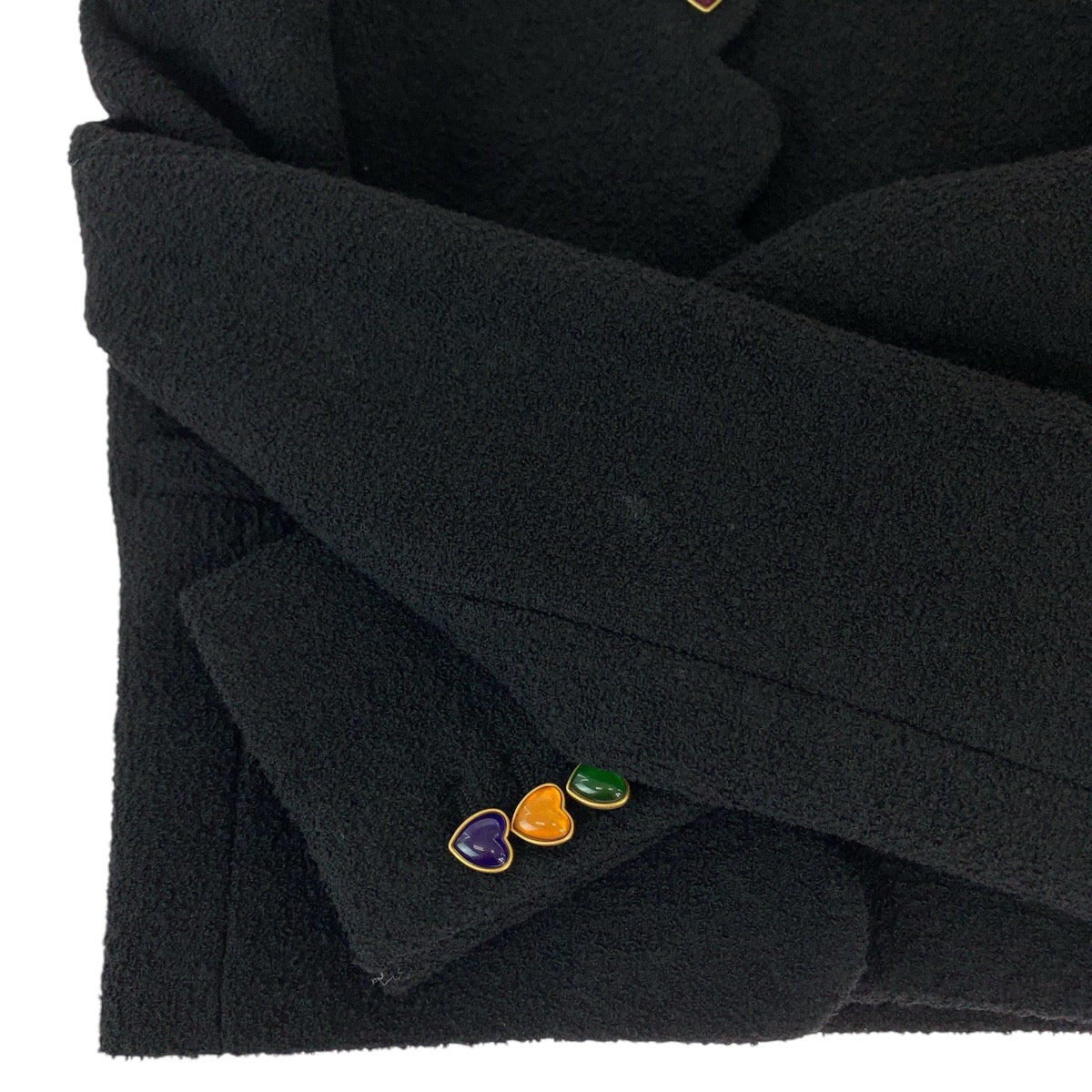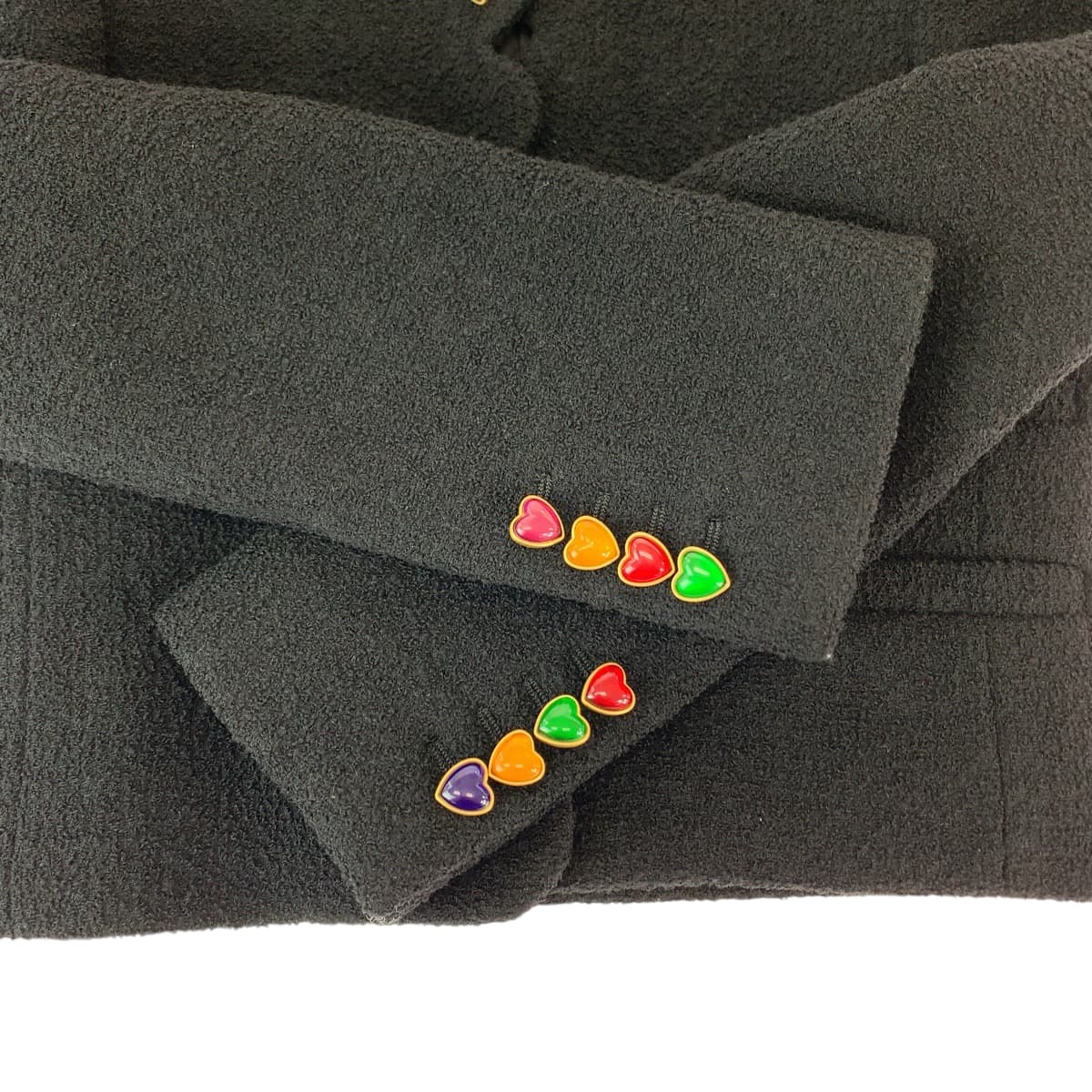 19616 SAINT LAURENT PARIS サンローランパリ ブークレツイード ラブハート クロップド サイズ34 ブラック 黒 マルチカラー ウール 686538 クロップドジャケット ノーカラージャケット レディース A180