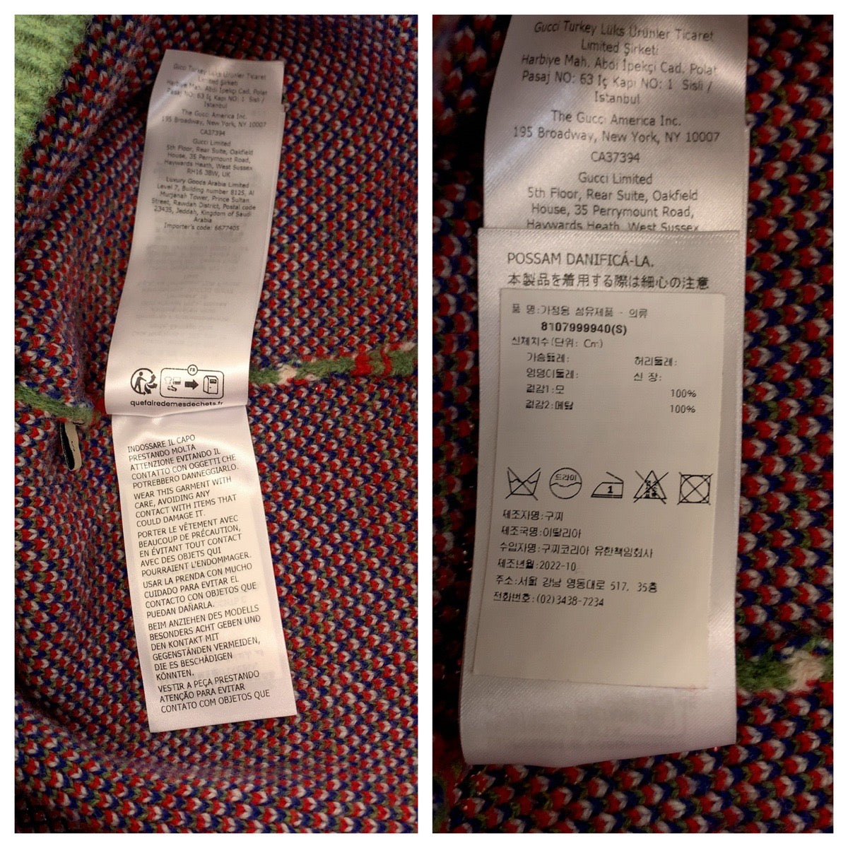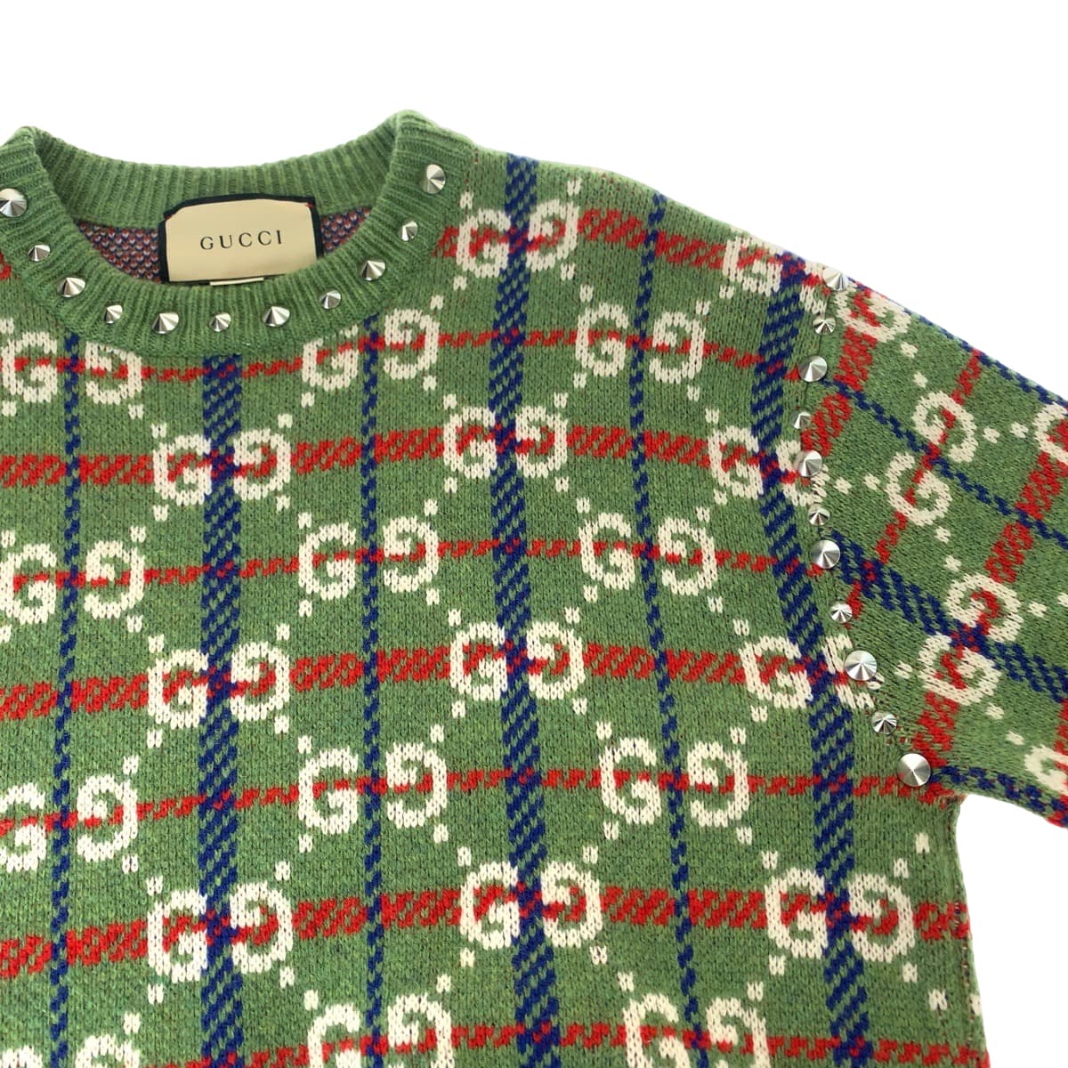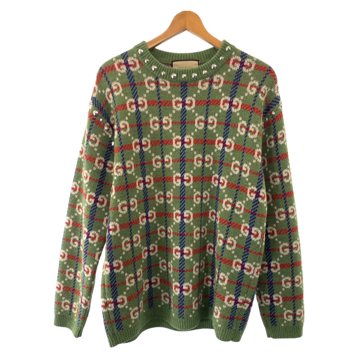 19642 GUCCI グッチ ネック スタッズ GG総柄 サイズS マルチカラー シルバー金具 ウール / メタル 713571 XKCOZ ニット セーター メンズ SA69