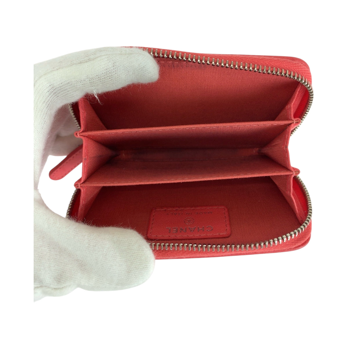 19652 CHANEL シャネル マトラッセ ココマーク レッド ピンク シルバー金具 ラムスキン コンパクトウォレット コインケース フラグメントケース レディース A53