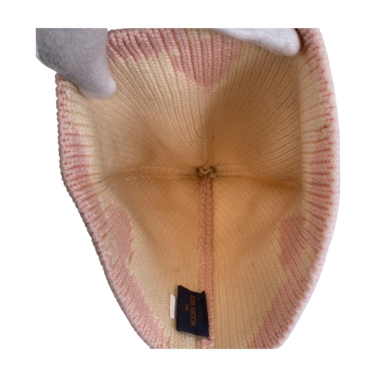 19665 LOUIS VUITTON ルイヴィトン ボネ モーニングラム ピンク ホワイト ウール M70841 ニット帽 レディース A