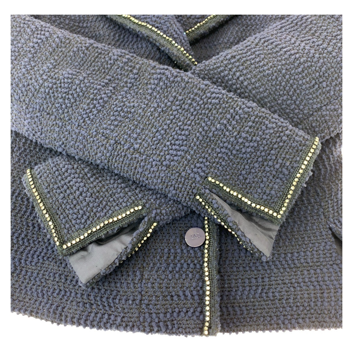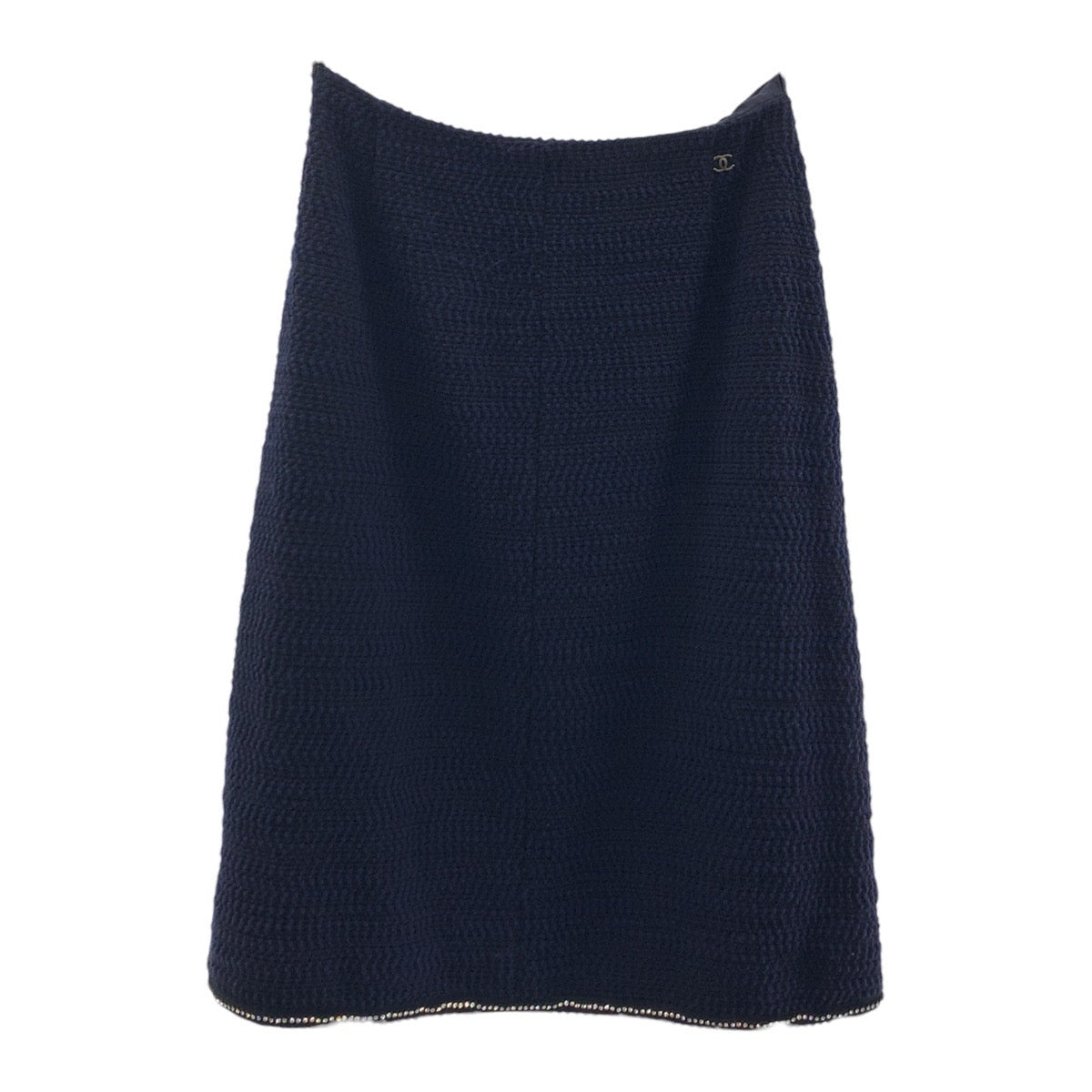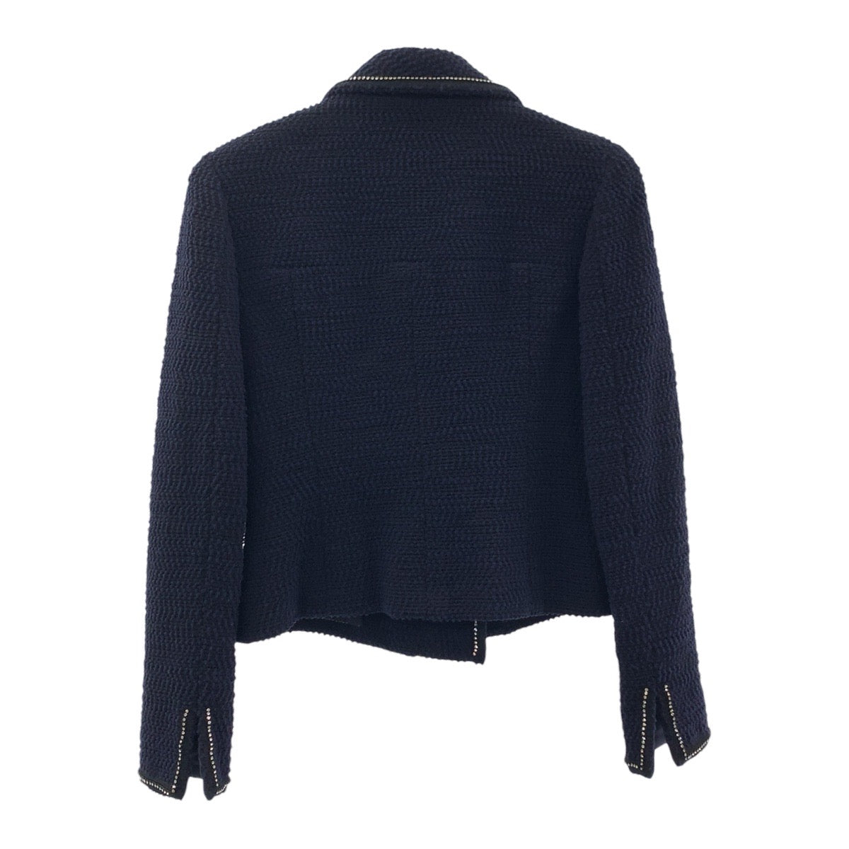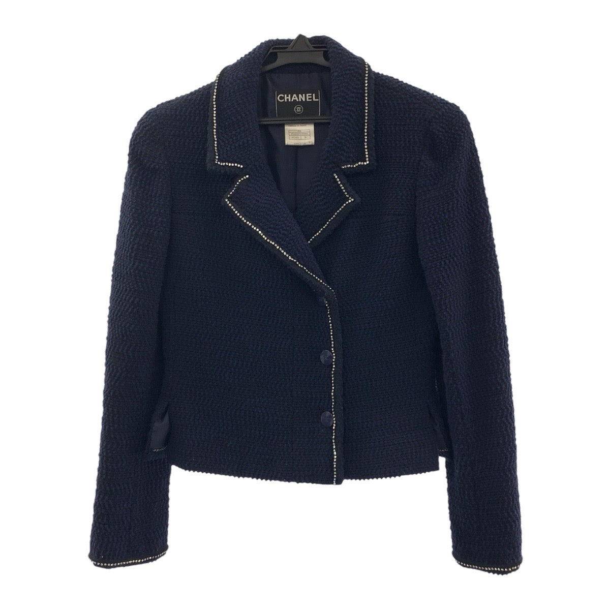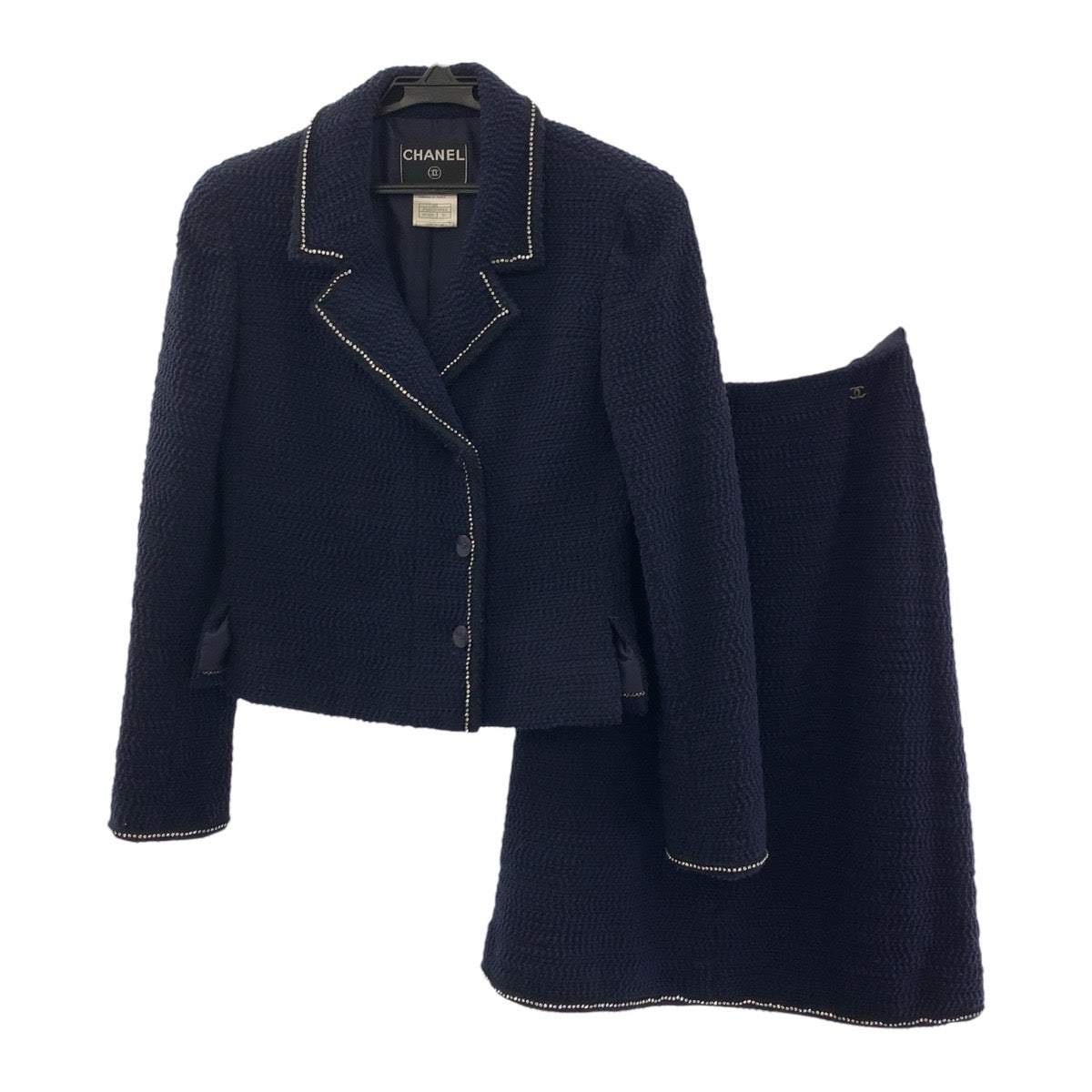 19683 CHANEL シャネル ツイード ココマーク ラインストーン サイズ36 ネイビー シルク / ウール / ナイロン スーツ セットアップ ジャケット レディース A200