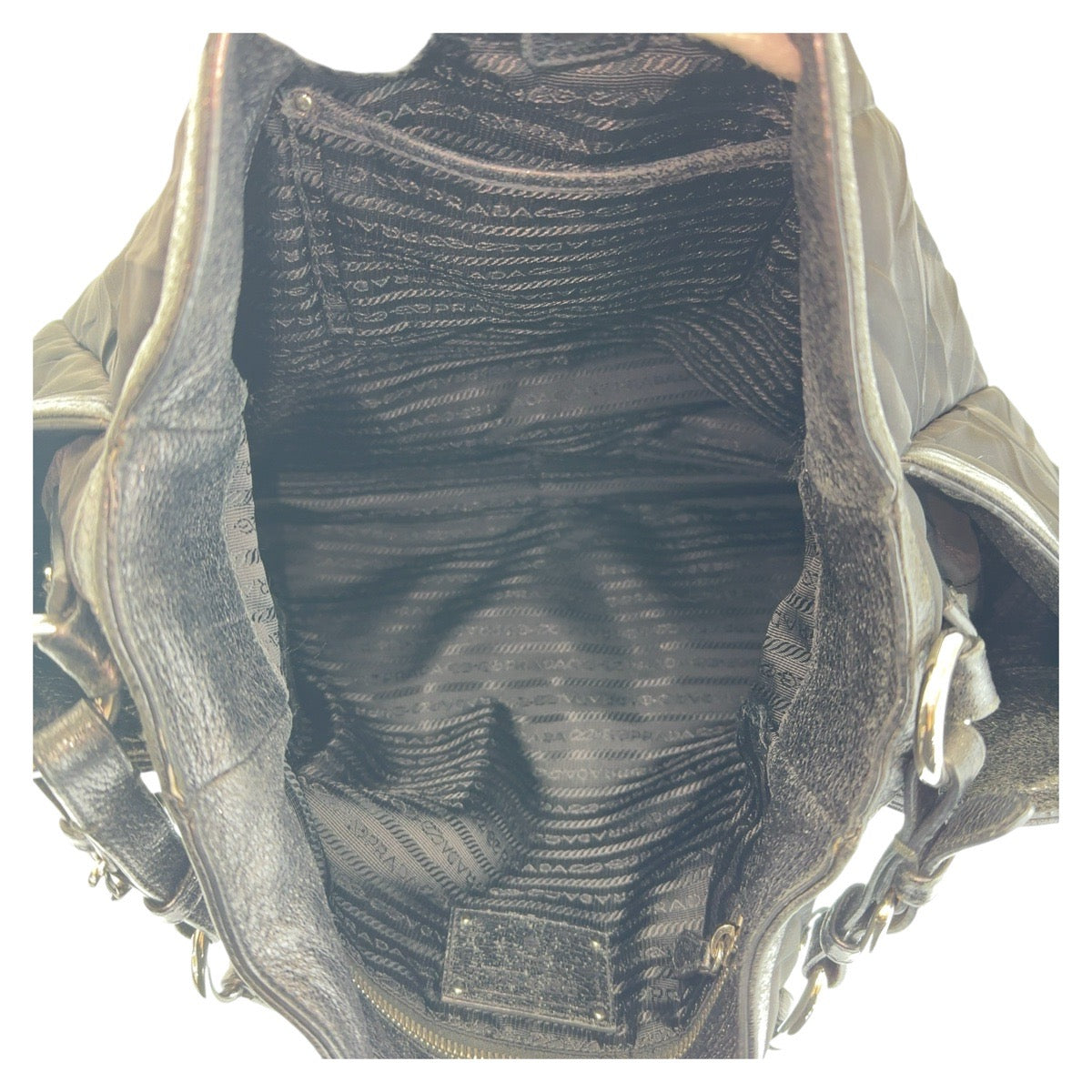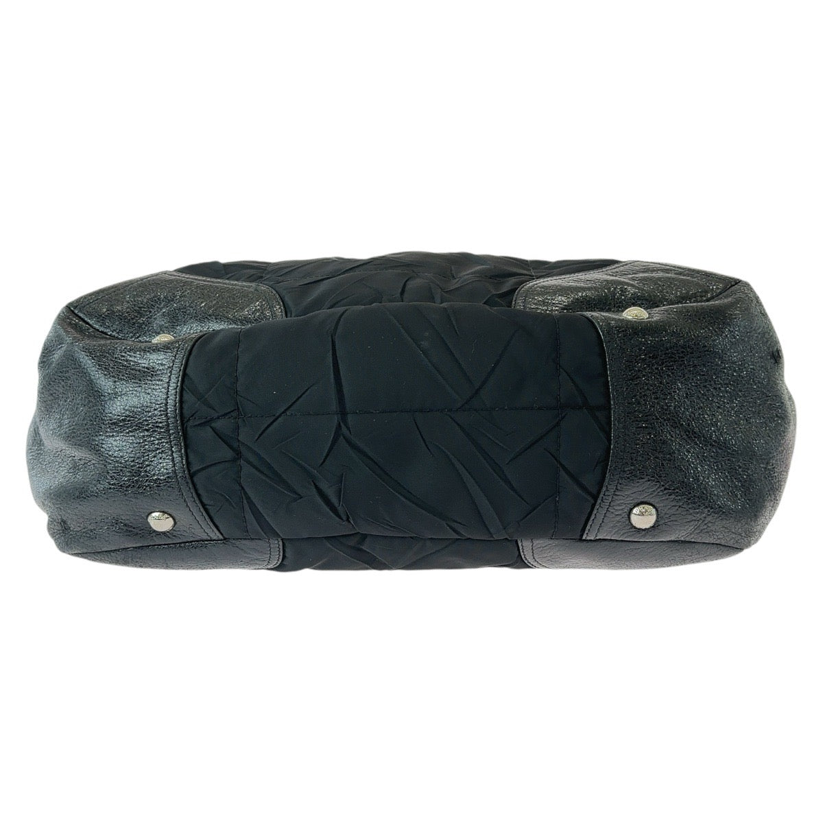 19816 PRADA プラダ テスート しわ加工 三角ロゴプレート ブラック 黒 シルバー金具 ナイロン / レザー ショルダーバッグ ハンドバッグ レディース ABP