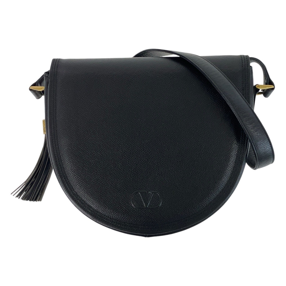 Valentino Garavani ヴァレンティノ ガラヴァーニ ヴィンテージ ブラック 黒 ゴールド金具 レザー 斜め掛け ショルダーバッグ ポシェット レディース A