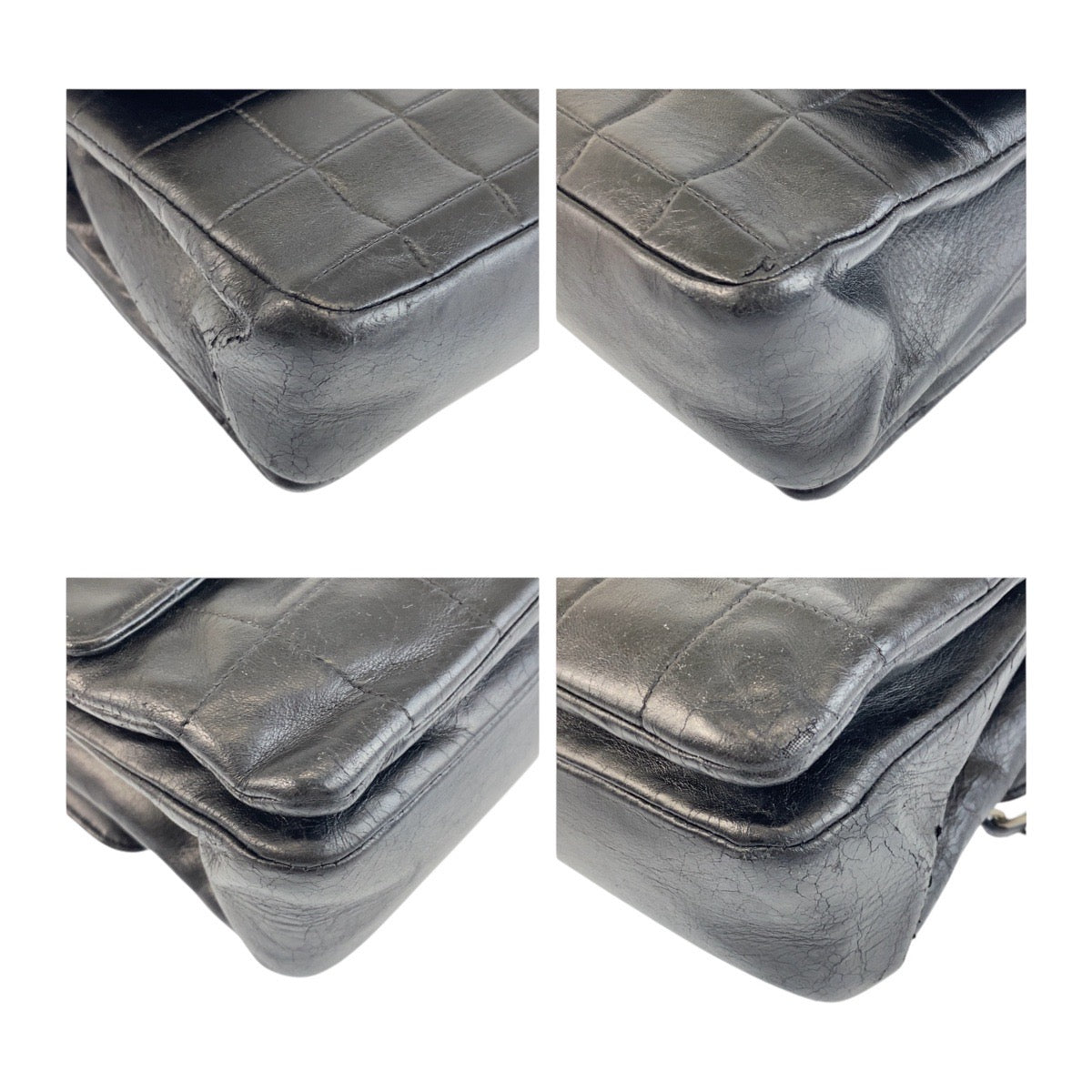 19890 CHANEL シャネル ヴィンテージ チョコバー ブラック 黒 シルバー金具 ラムスキン 6135*** チェーンショルダーバッグ レディース AB138