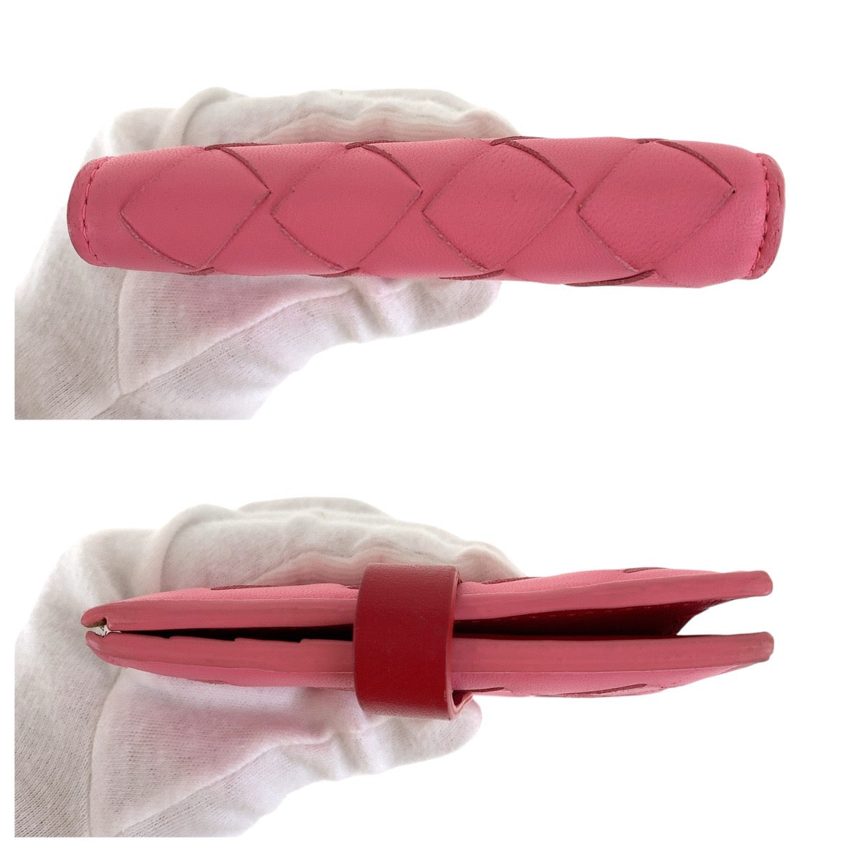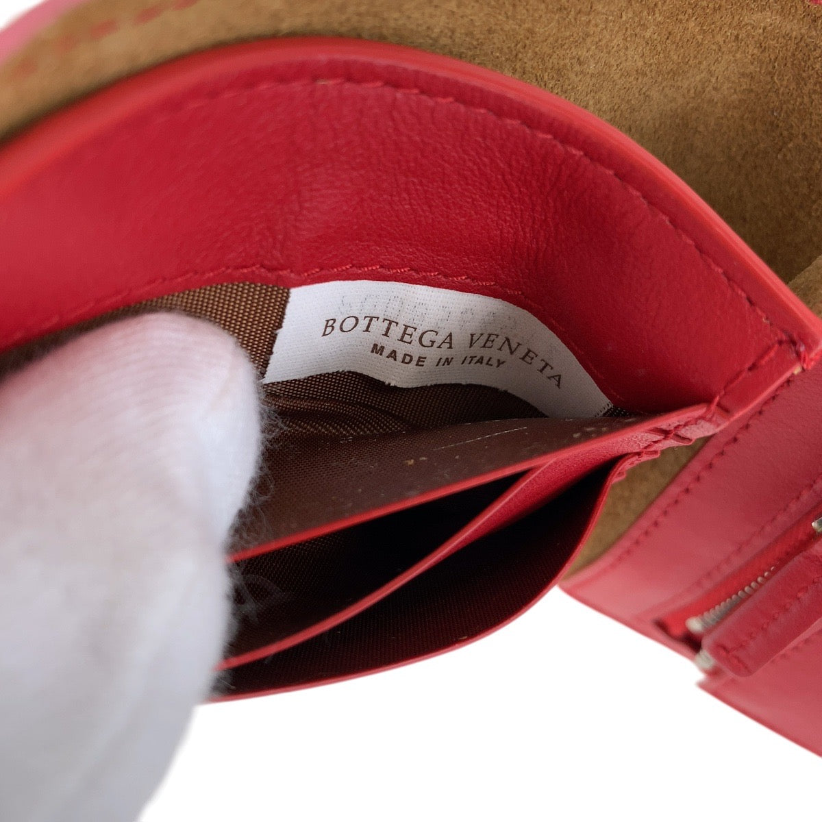 19941 BOTTEGAVENETA ボッテガヴェネタ イントレチャート ピンク レッド シルバー金具 レザー 折財布 コンパクトウォレット レディース ABP