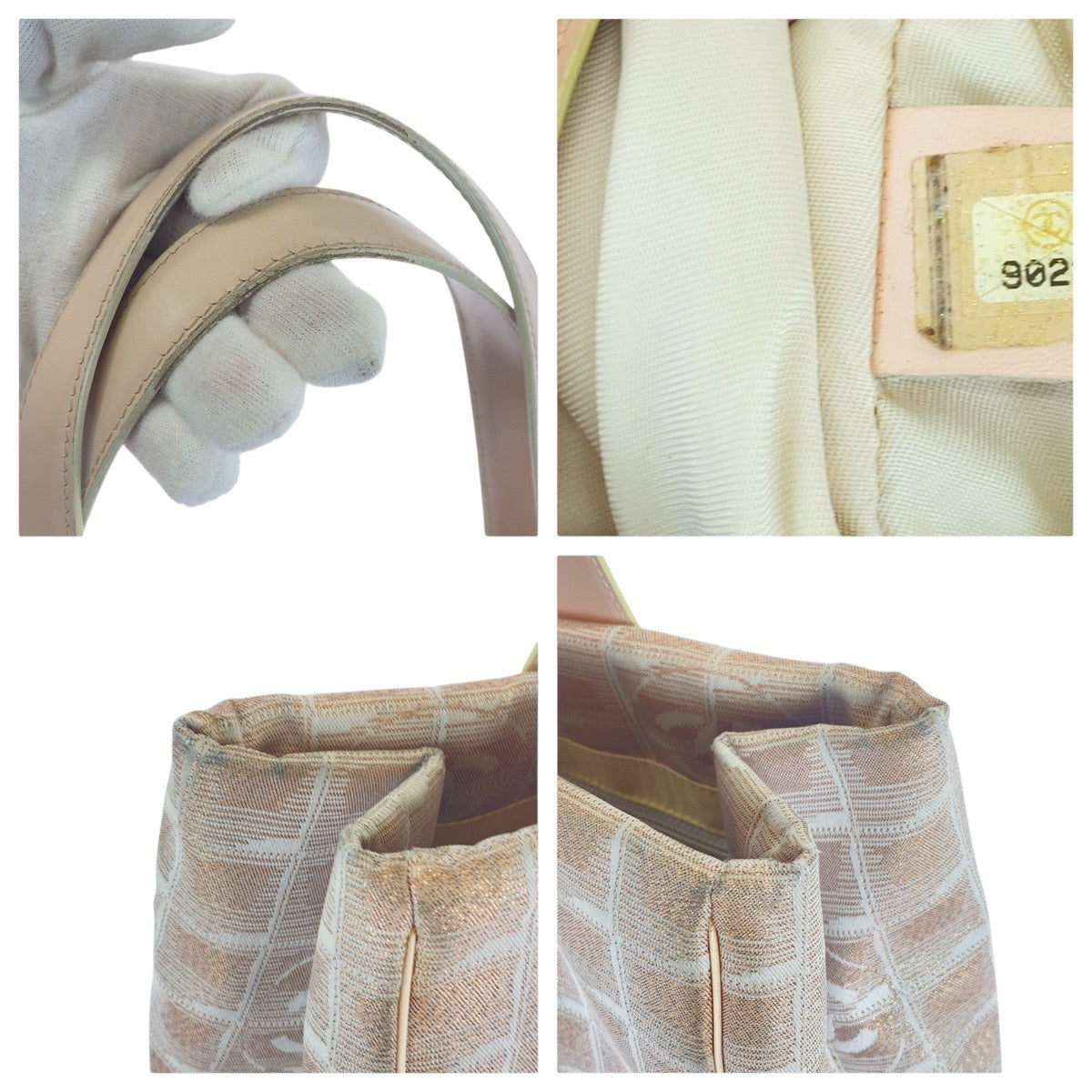 19954 CHANEL シャネル ニュートラベルライン ココマーク ピンクベージュ シルバー金具 キャンバス / レザー トートバッグ ハンドバッグ レディース AB