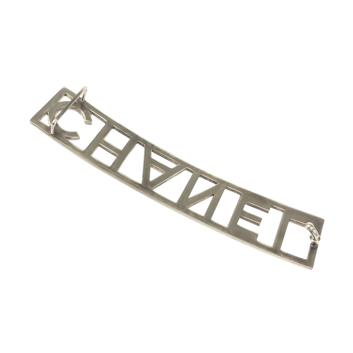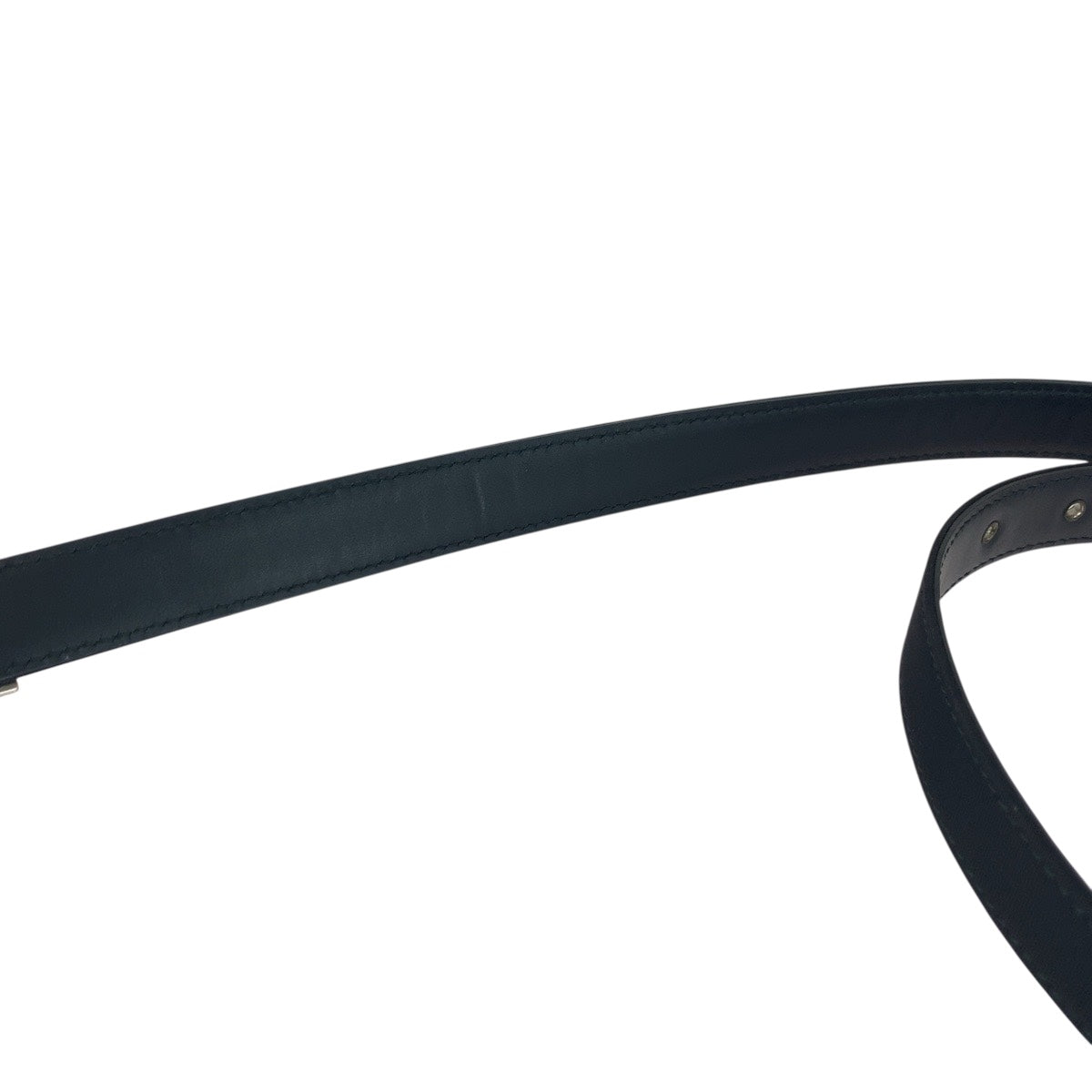 20087 CHANEL シャネル ロゴ ラインストーン 85cm/34inc ブラック シルバー金具 レザー ベルト B15 S刻印 レディース A84