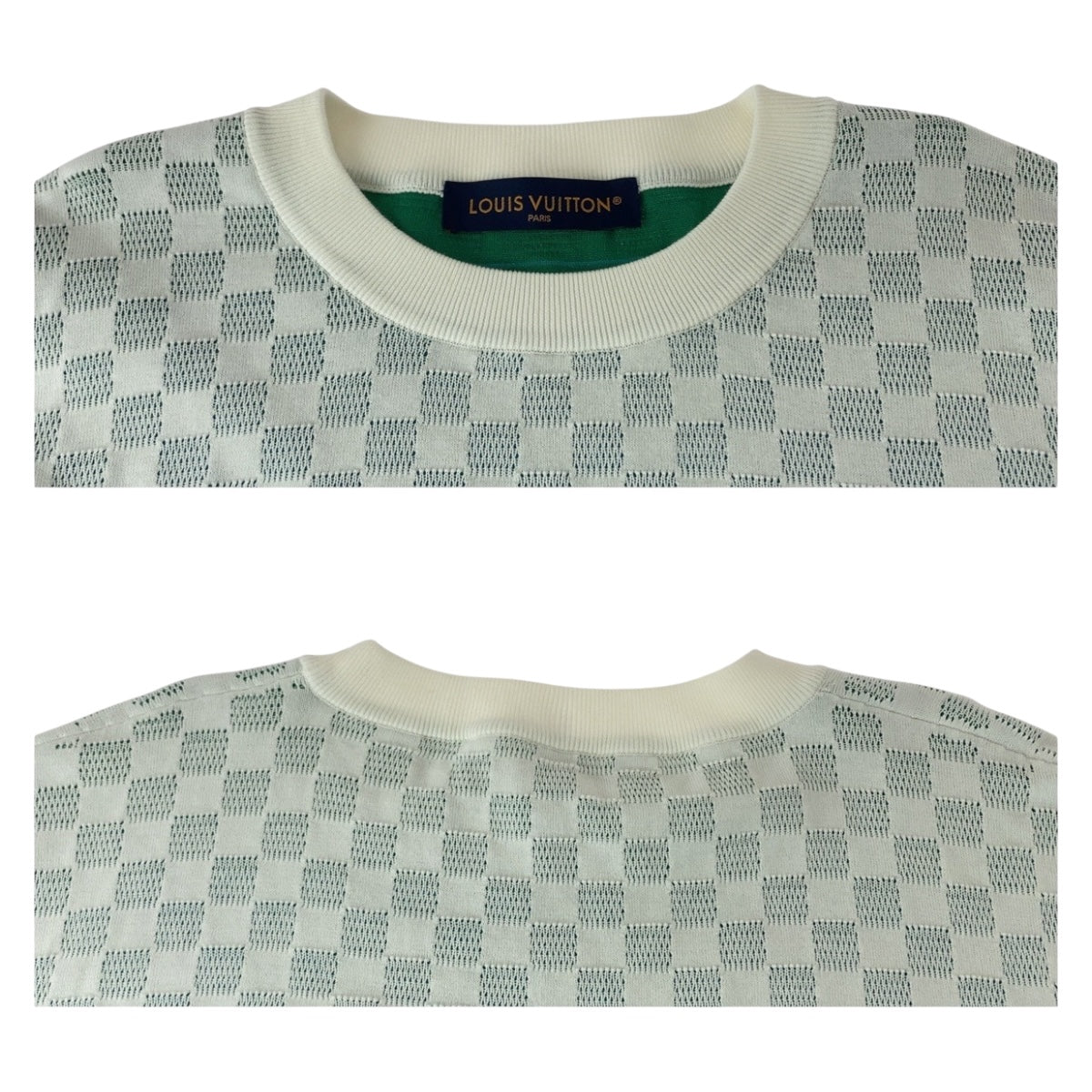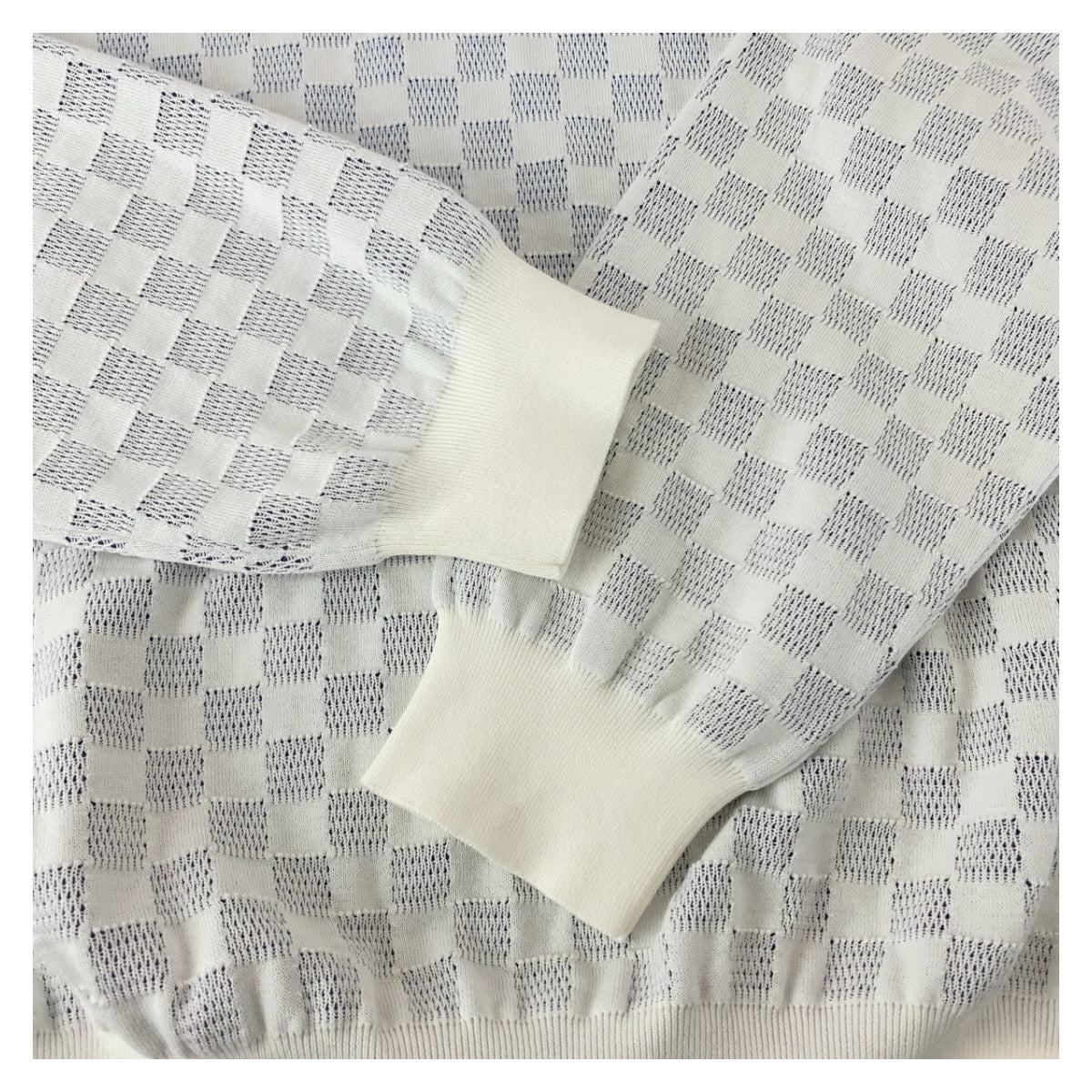20096 LOUIS VUITTON ルイヴィトン ダミエ グラディエント サイズL ホワイト ブルー コットン ニット プルオーバー セーター カットソー メンズ ABP118