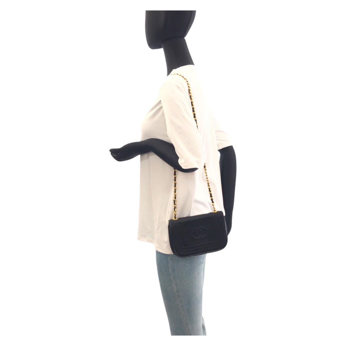 20098 CHANEL シャネル ヴィンテージ ココマーク ブラック 黒 ゴールド金具 サテン チェーンショルダーバッグ ポシェット レディース AB88