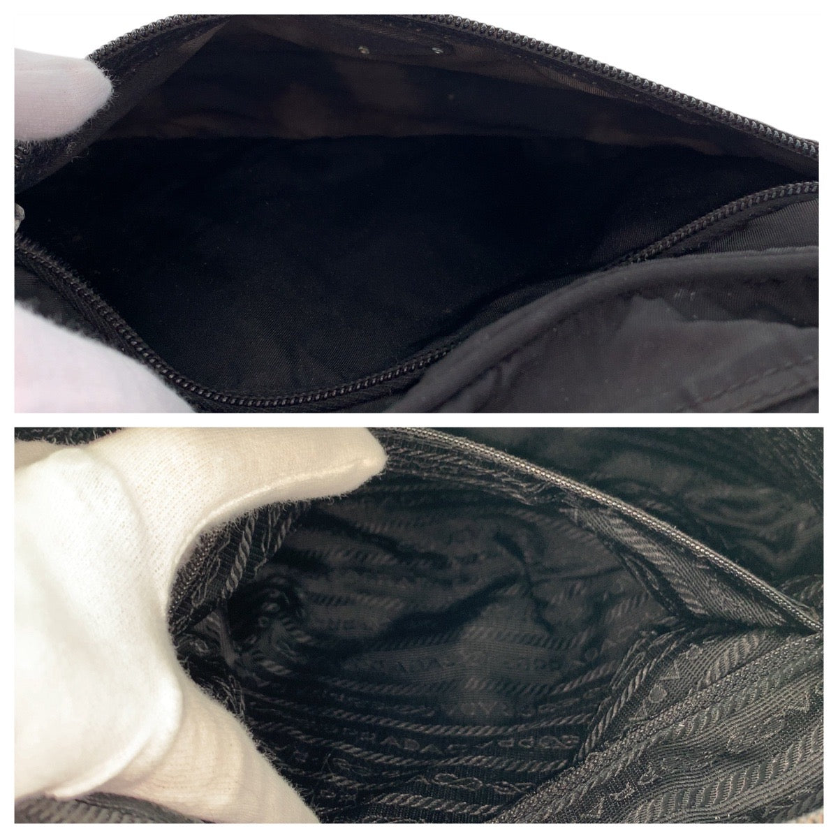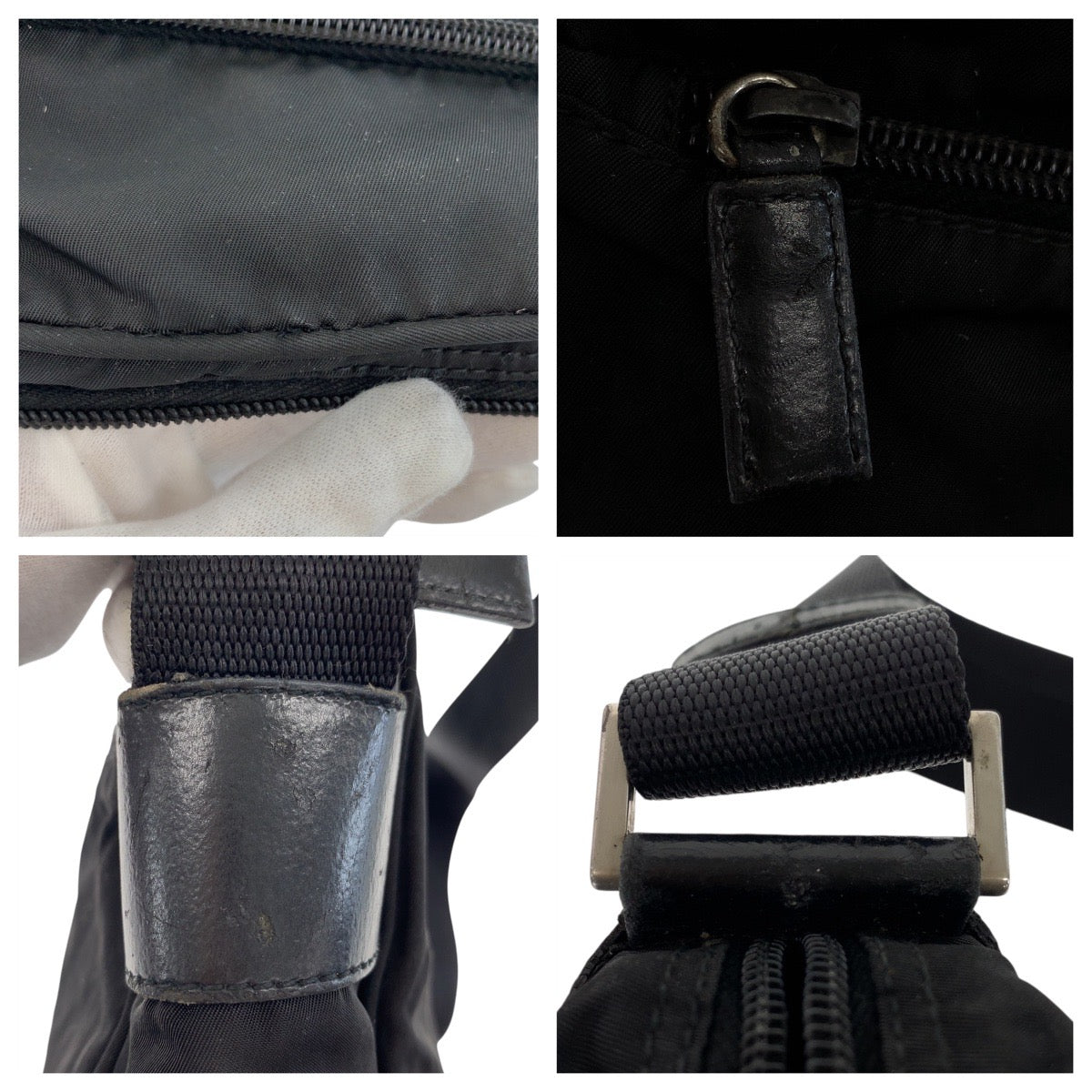 20174 PRADA プラダ テスート 三角ロゴプレート ブラック 黒 シルバー金具 ナイロン ショルダーバッグ ポシェット レディース AB35