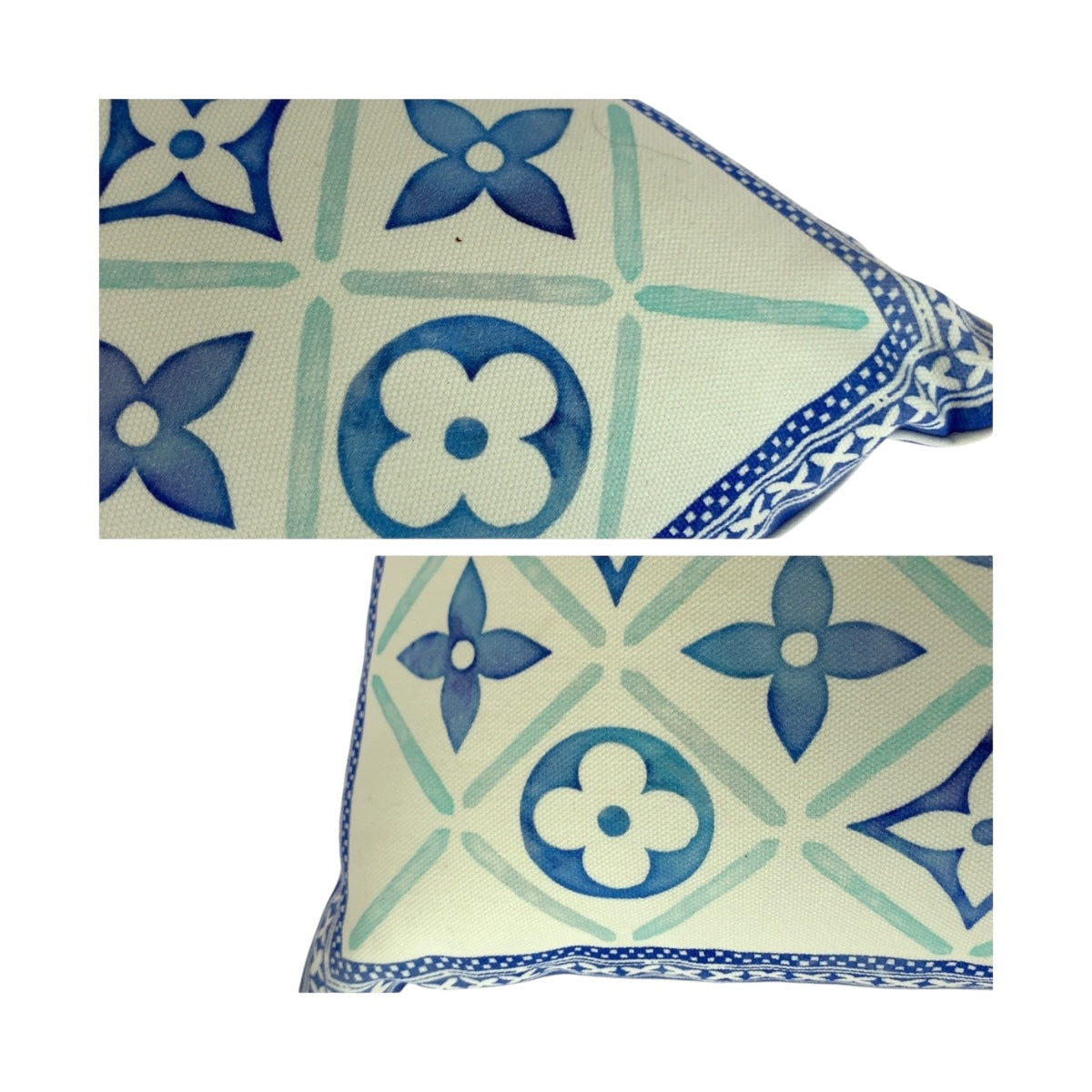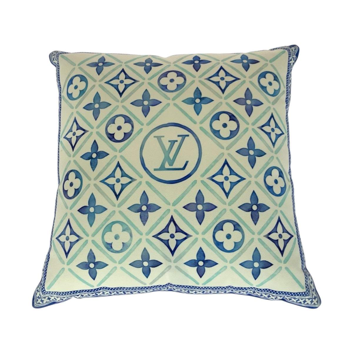 20206 LOUIS VUITTON ルイヴィトン モノグラム 男女兼用 ホワイト ブルー コットン インテリア クッション A62