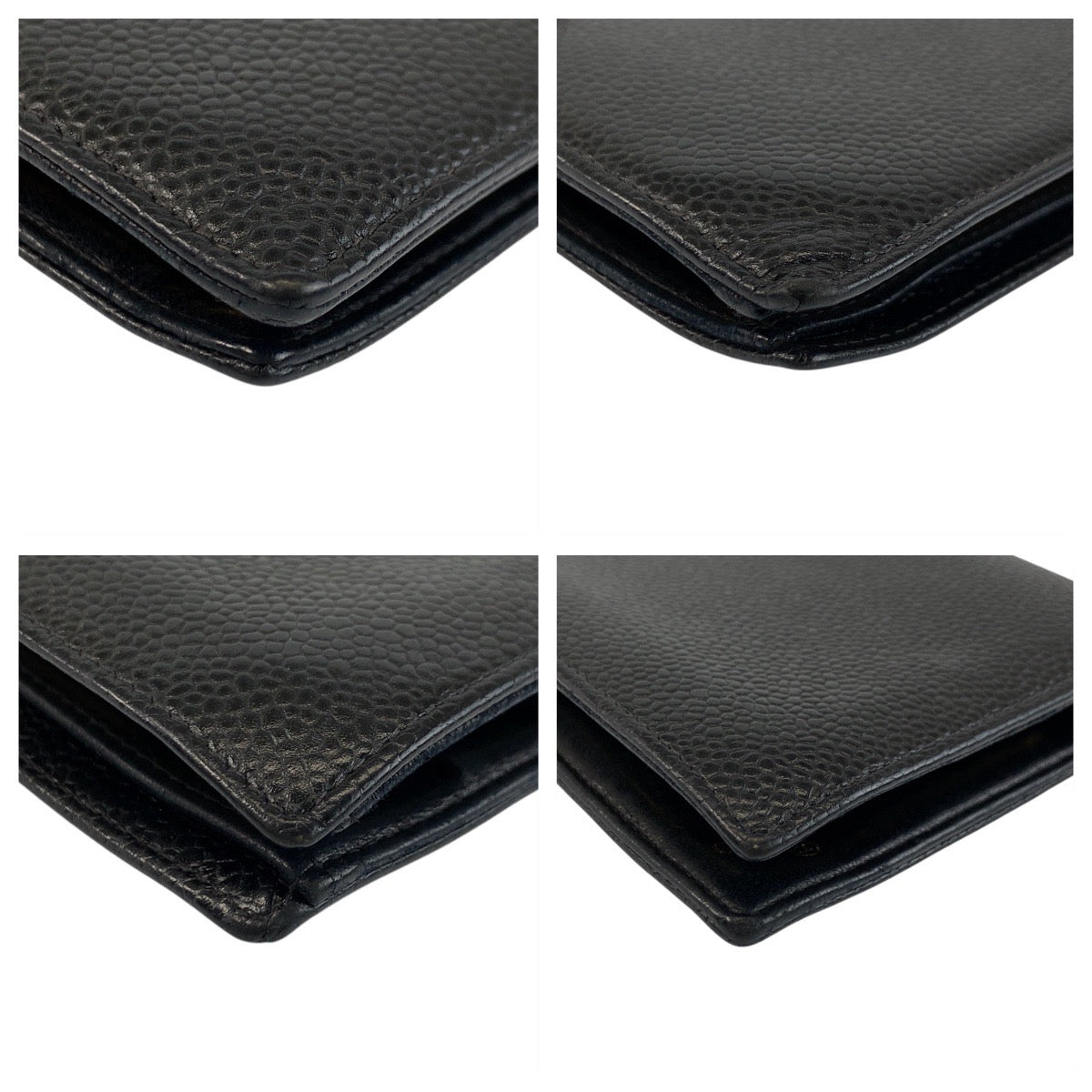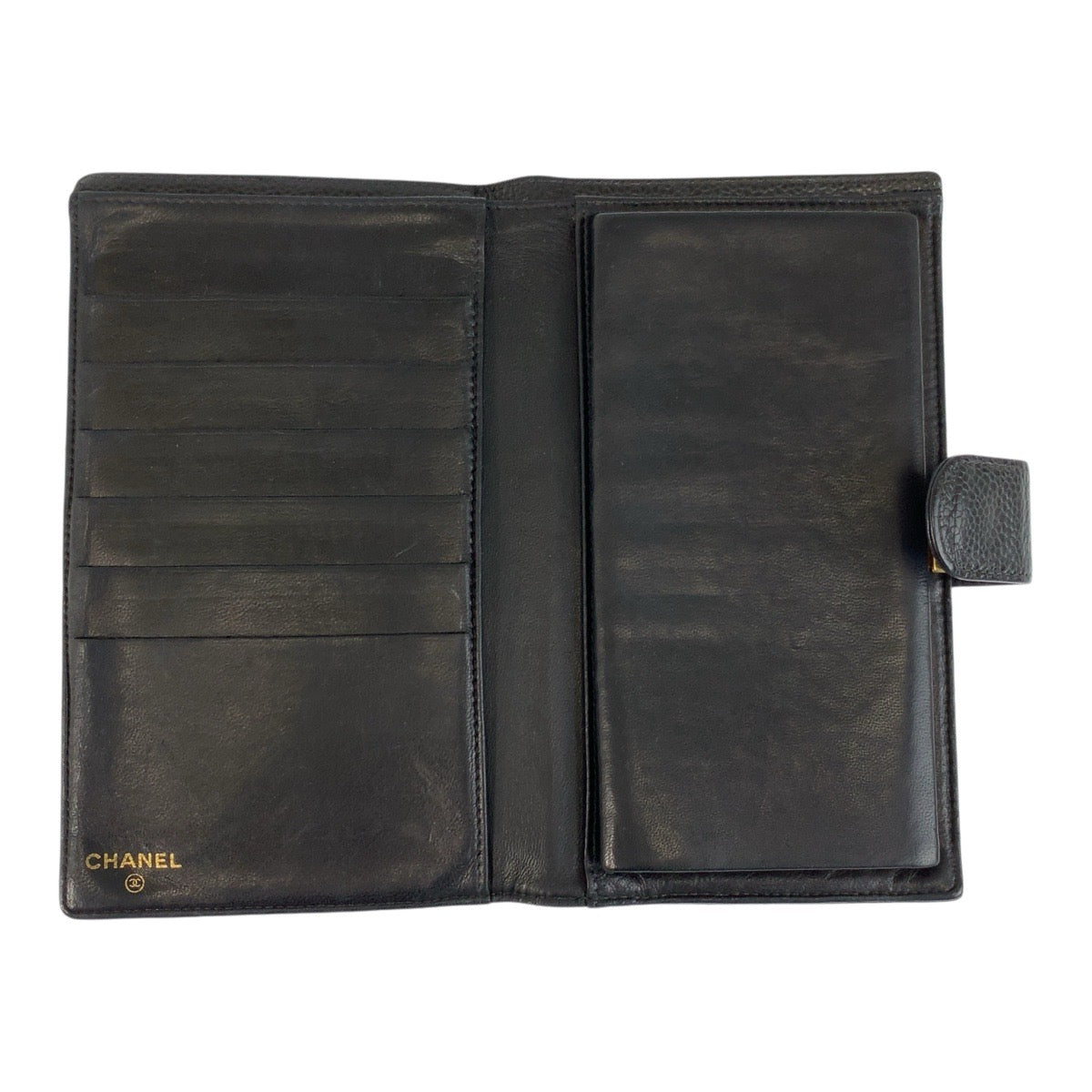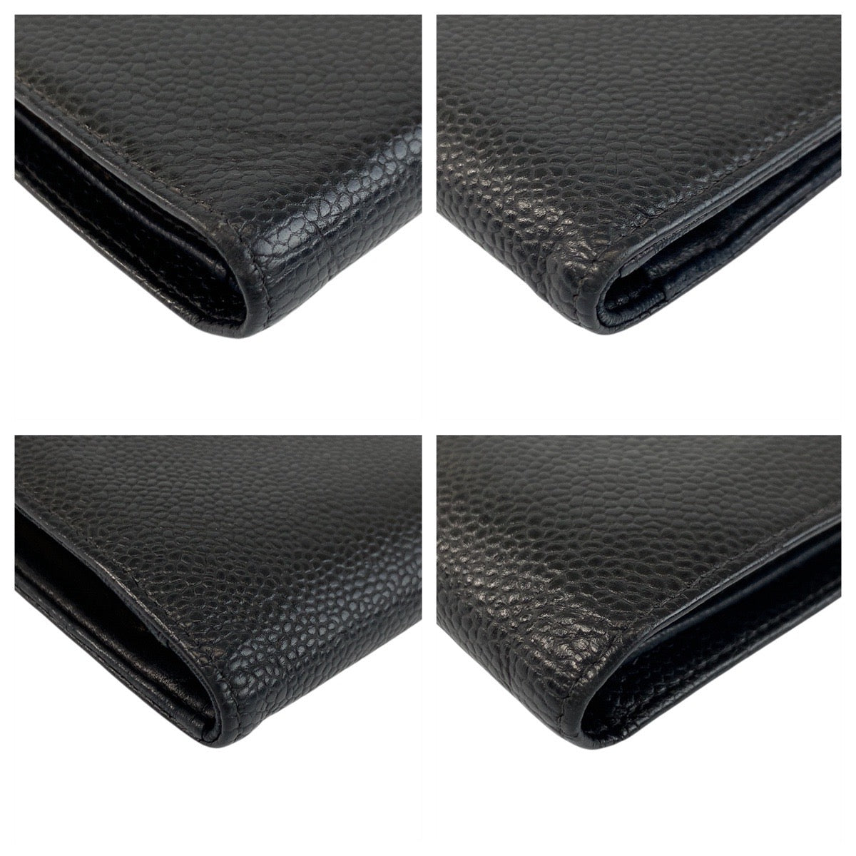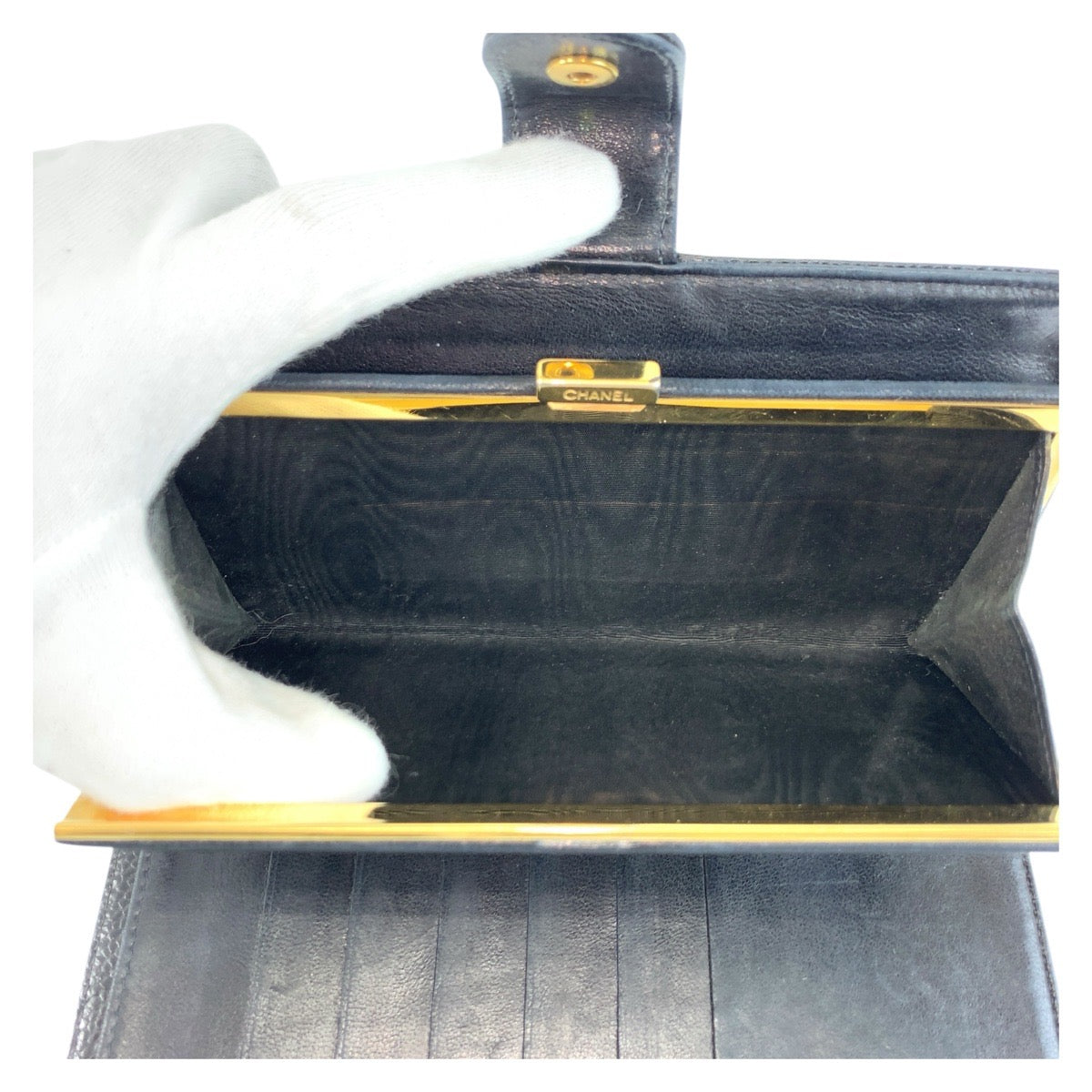 20235 CHANEL シャネル ヴィンテージ ココマーク ブラック 黒 ゴールド金具 キャビアスキン 折財布 がま口 コンパクトウォレット レディース ABP42