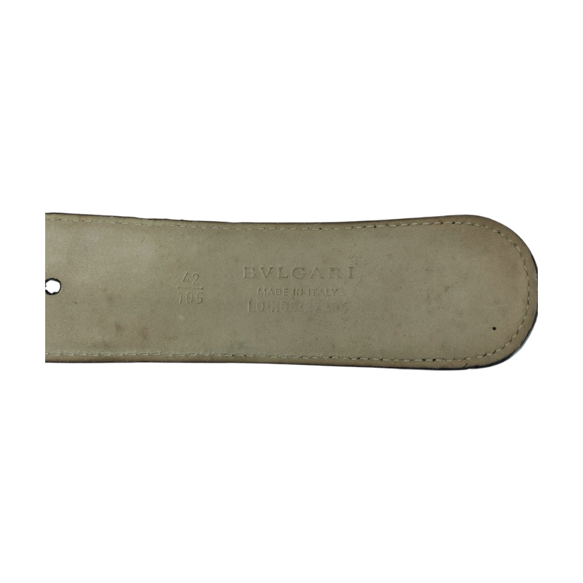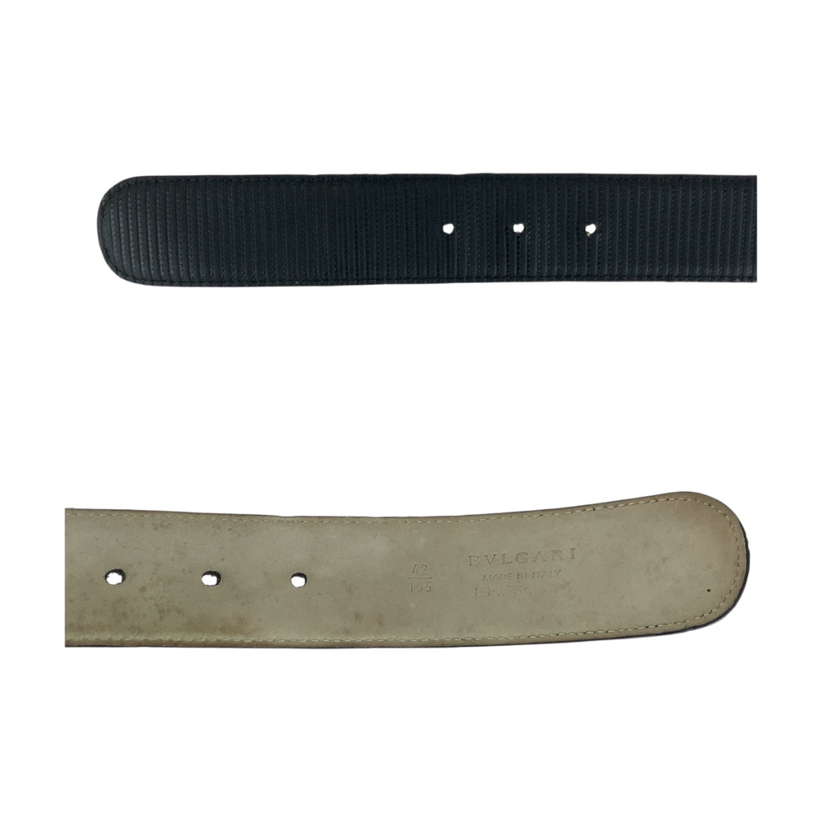 20353 BVLGARI ブルガリ サークルロゴ 105cm/42inc ブラック 黒 シルバー金具 レザー ベルト バックル メンズ AB14
